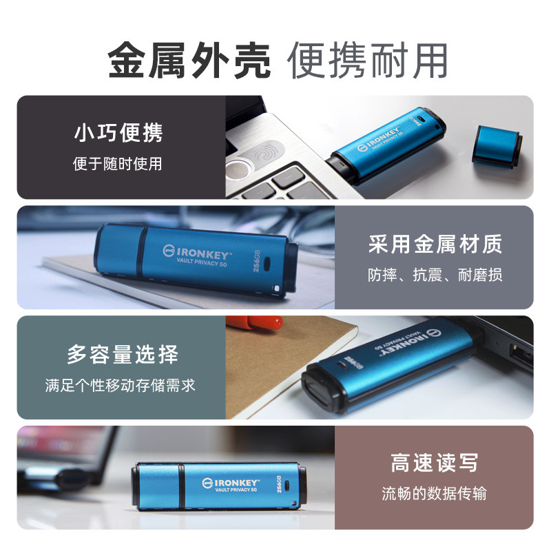 金士顿IKVP50 8G/16G/32G U盘 企业级硬件加密优盘 usb3.2高速u盘