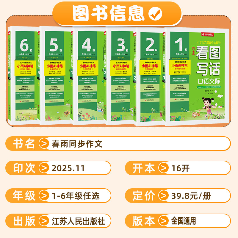 2026春新版春雨教育小学语文同步作文一年级二年级三四五六年级下册上册人教版创新口语交际看图写话写作技巧素材同步课本同学范文