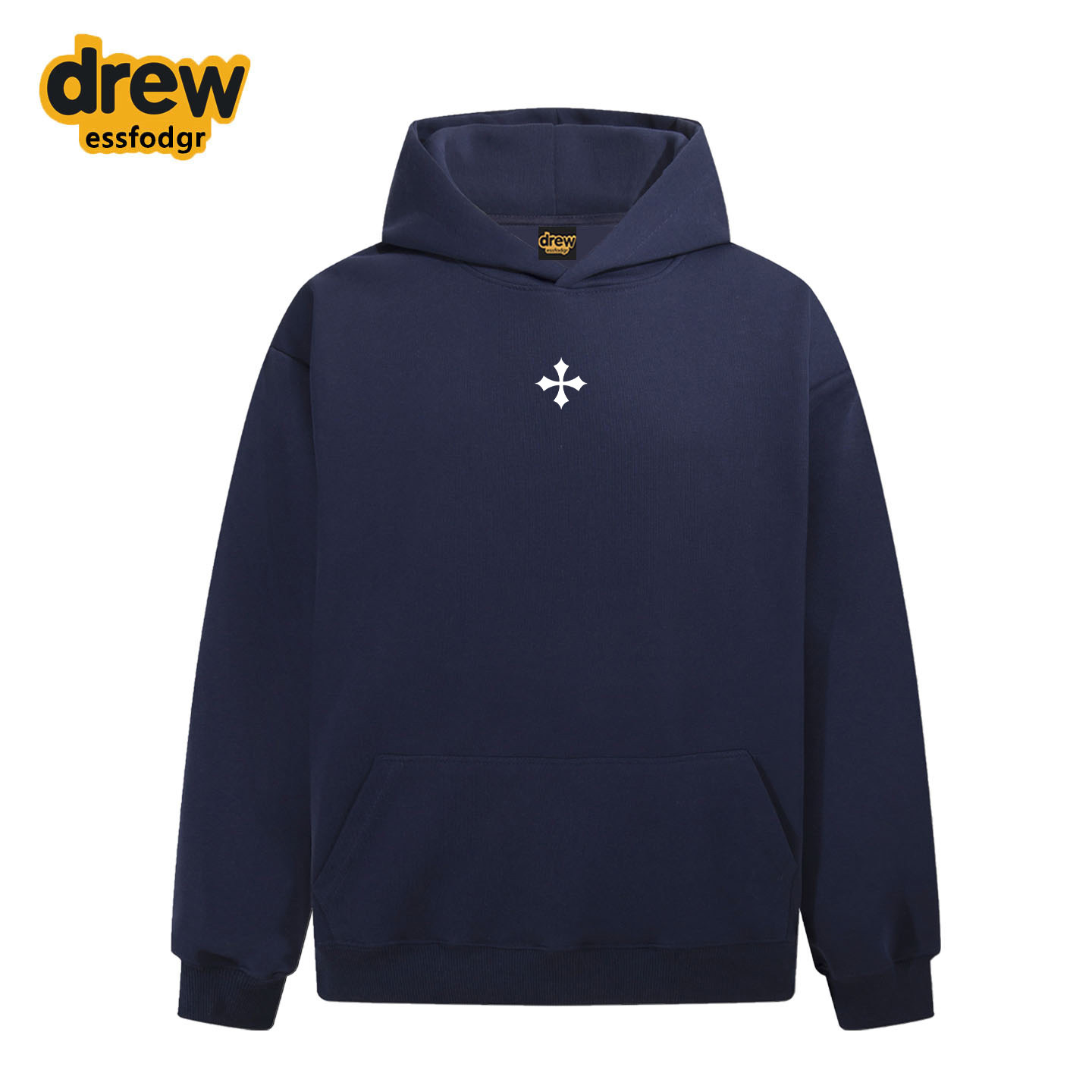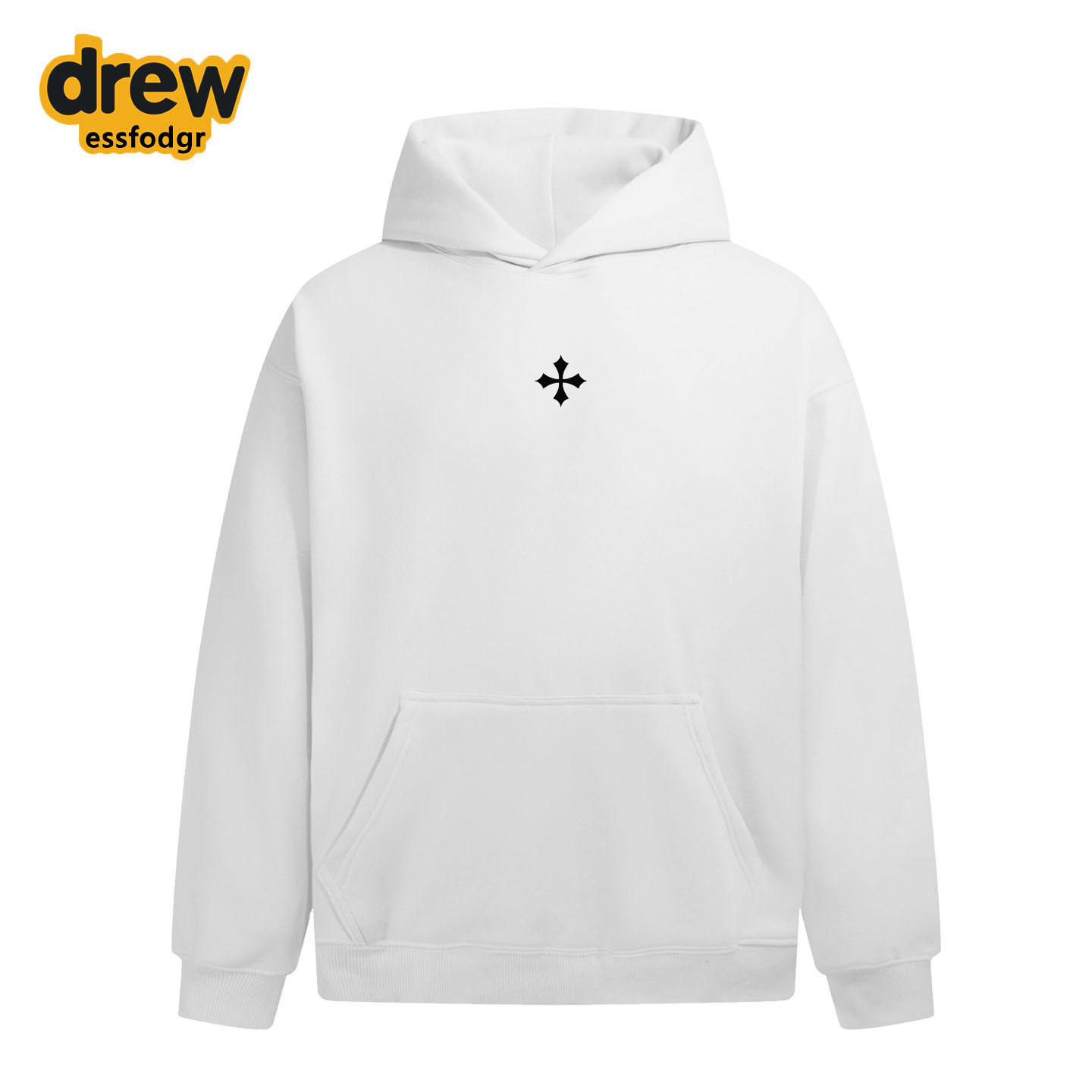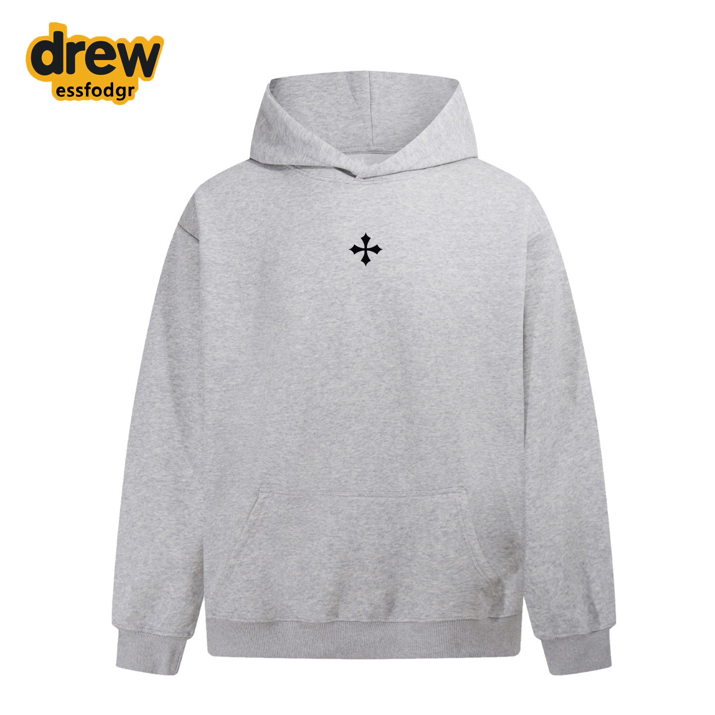 Drew美式潮牌复古十字架印花连帽加绒卫衣男街头宽松情侣学生外套