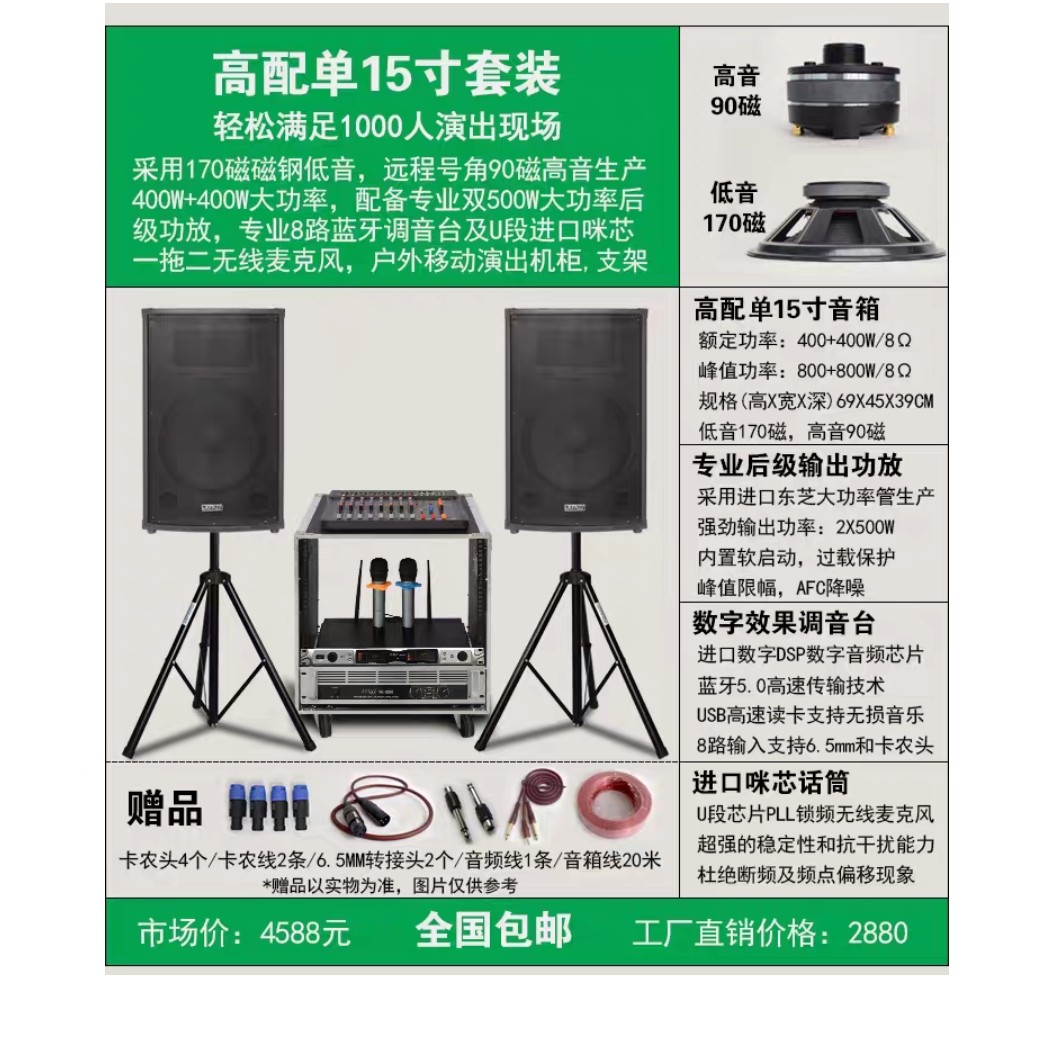 演出音响套装单15寸大功率家用K主持HiFi音箱歌户外广场舞台婚庆