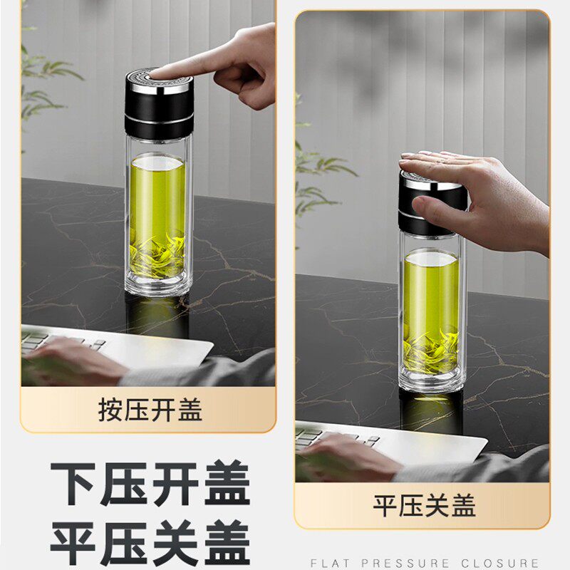 宝选一键开盖水杯车载双层玻璃杯男士泡茶保温速开茶水分离杯茶杯