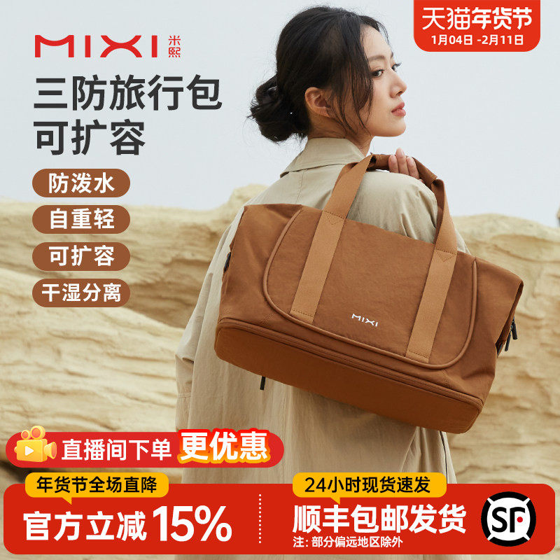 米熙大容量旅行包女轻便手提斜挎运动健身包短途旅游收纳行李袋男