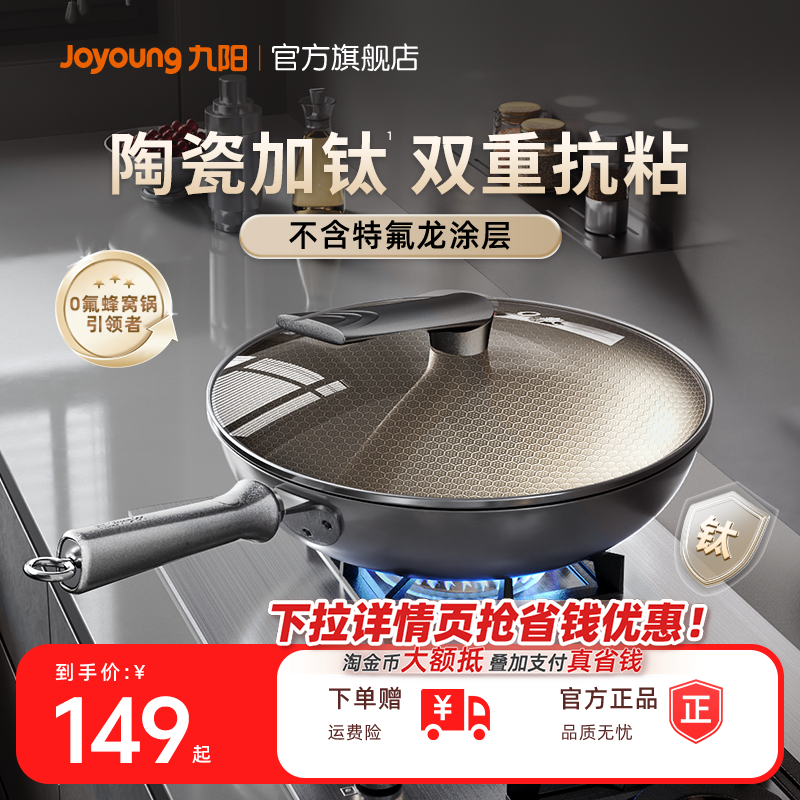 九阳不粘锅家用炒锅炒菜锅钛不锈钢蜂窝锅电磁炉专用燃气灶官方炊