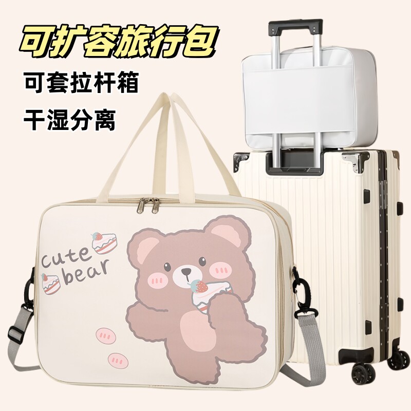 可爱短途旅行包女待产大容量学生手提轻便可登机行卡通行李袋子