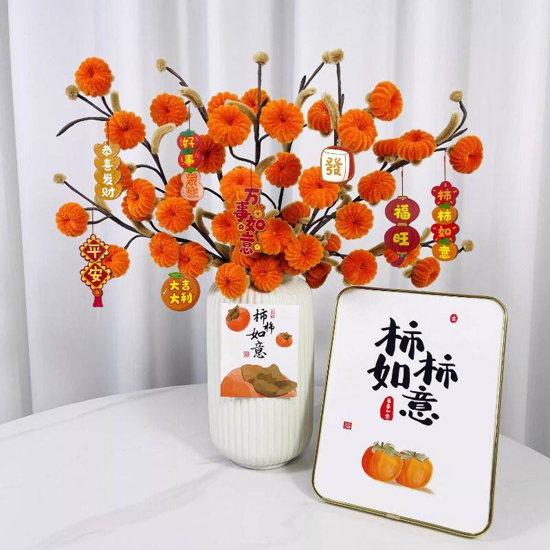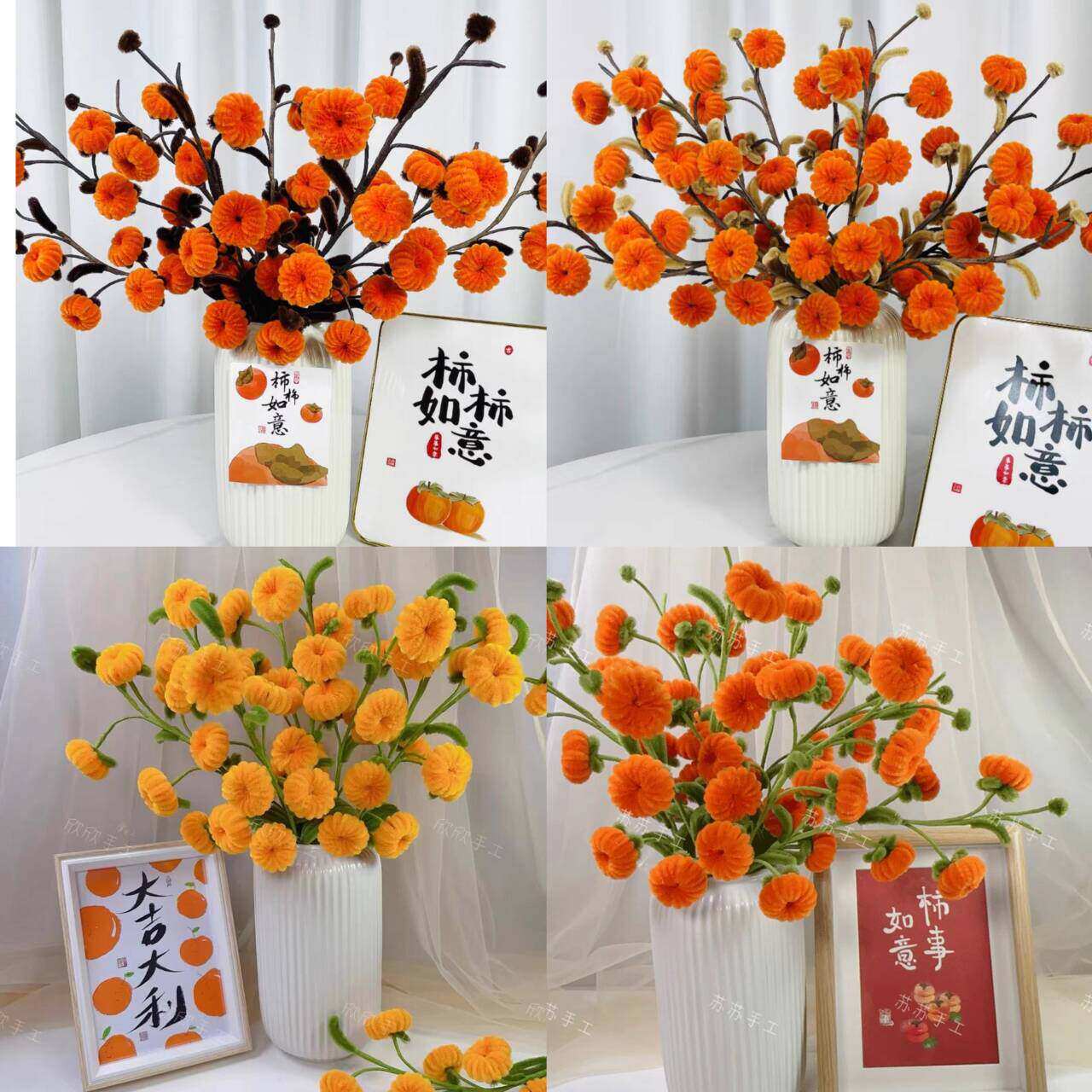 柿柿如意扭扭棒材料包中秋节日活动送礼物diy毛根加密花束柿子花