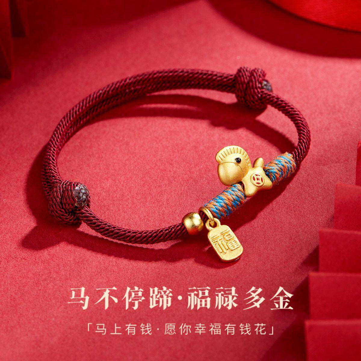 马上有钱手绳红绳手链沙金手工编织马年本命年转运招财闺吉祥生肖