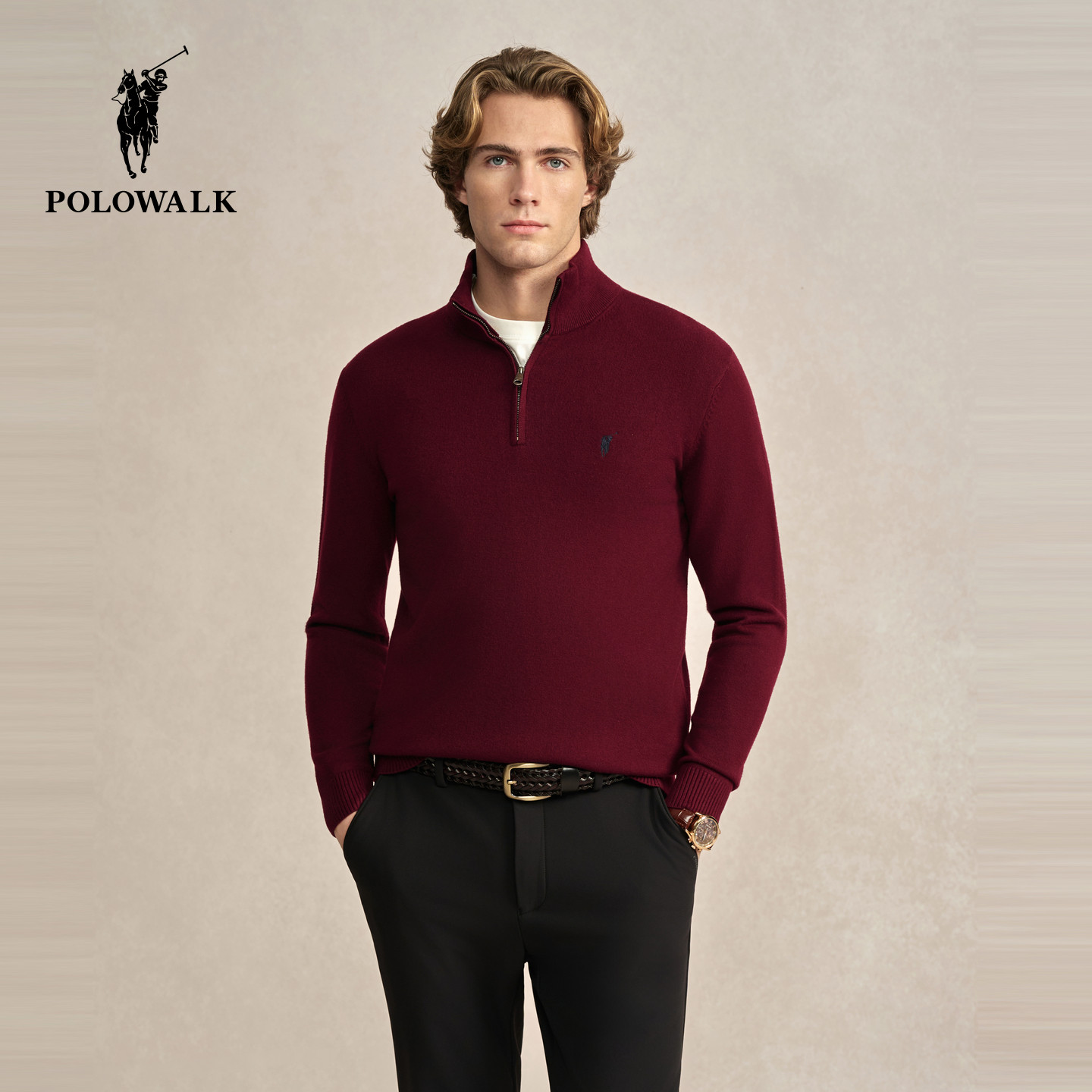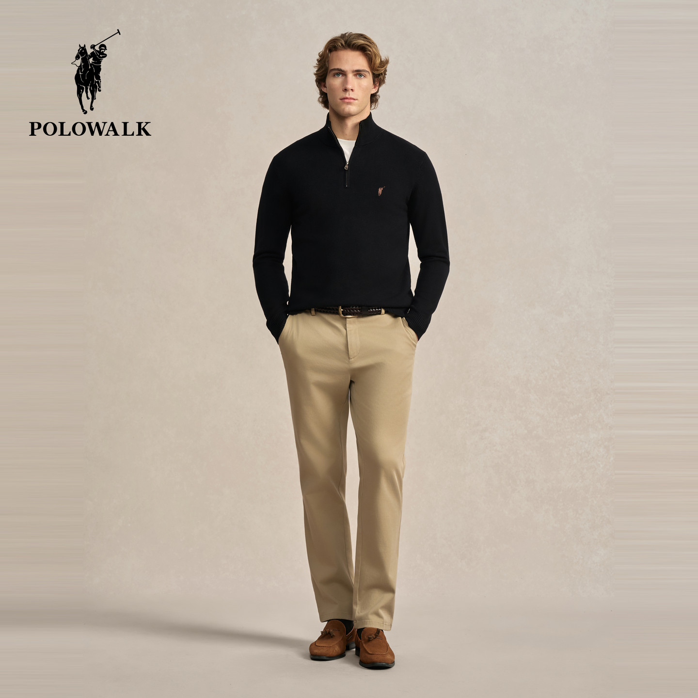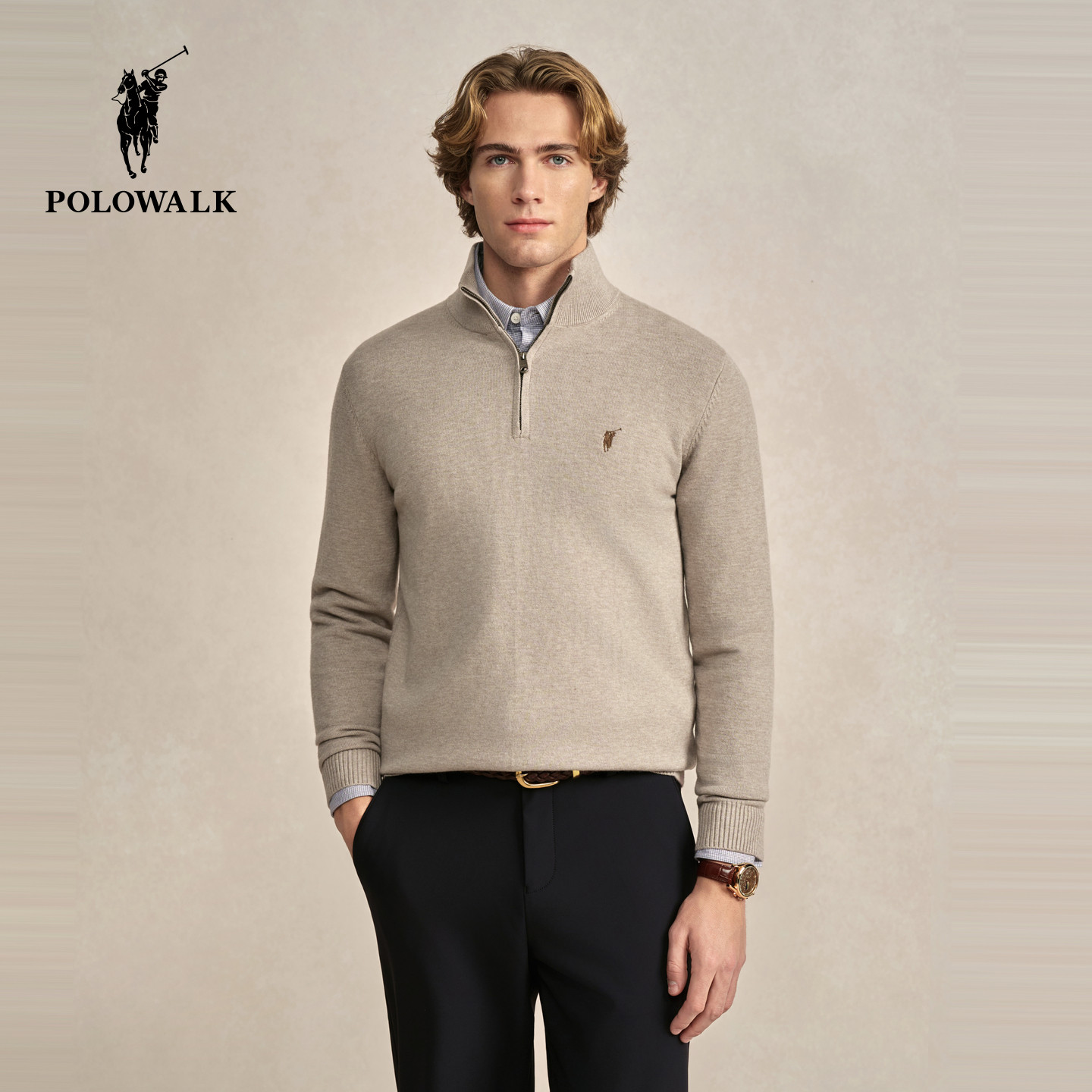 【远红外升温】POLOWALK男式针织衫2025秋冬新品半拉链套头上衣