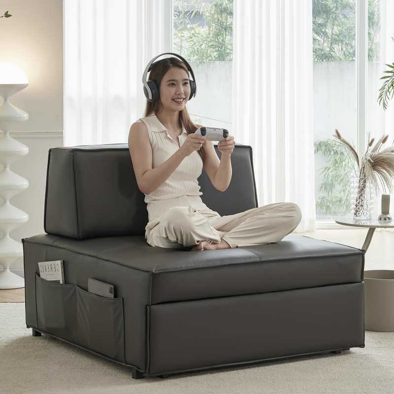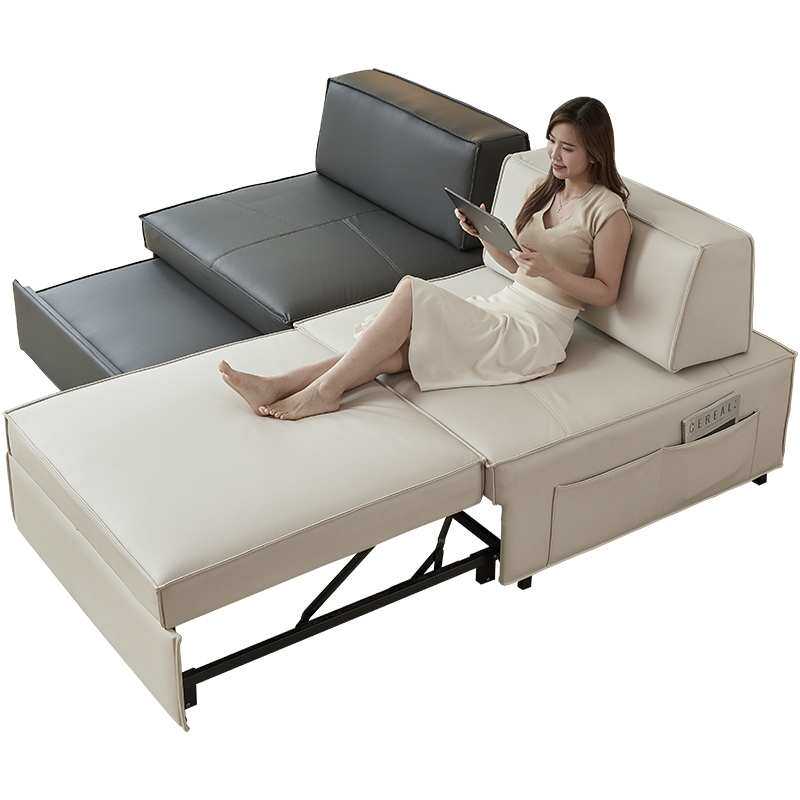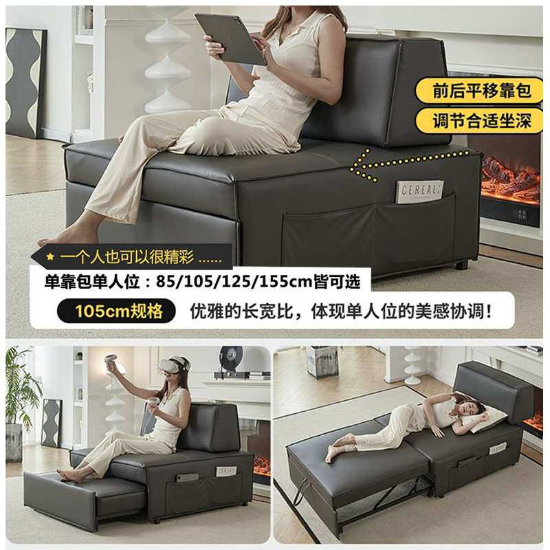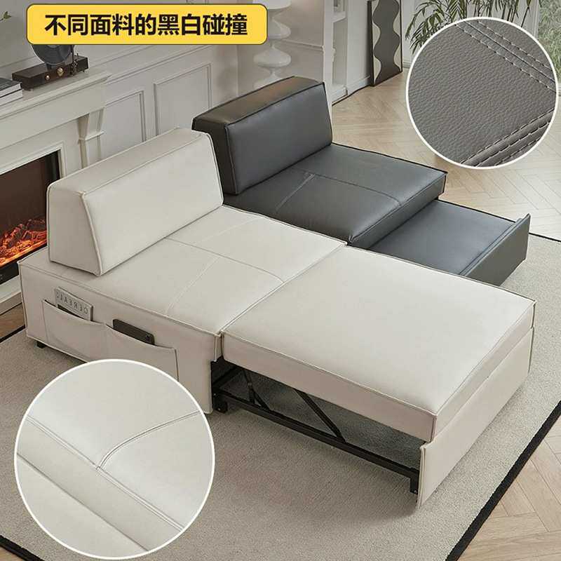 北欧轻奢风单人皮艺沙发床折叠客厅多人小户型两用设计师布艺沙发