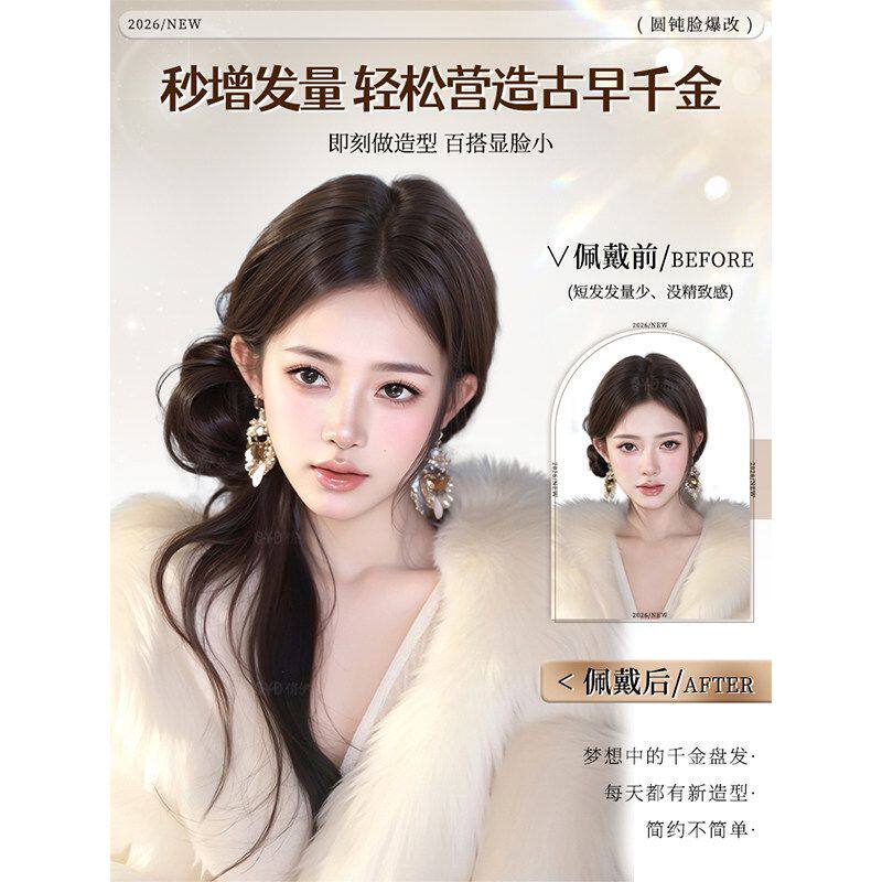 古风汉服假发髻盘发一体式发包古装明制唐风懒人造型垫发全套头饰