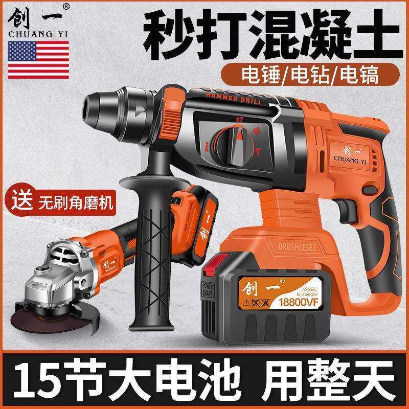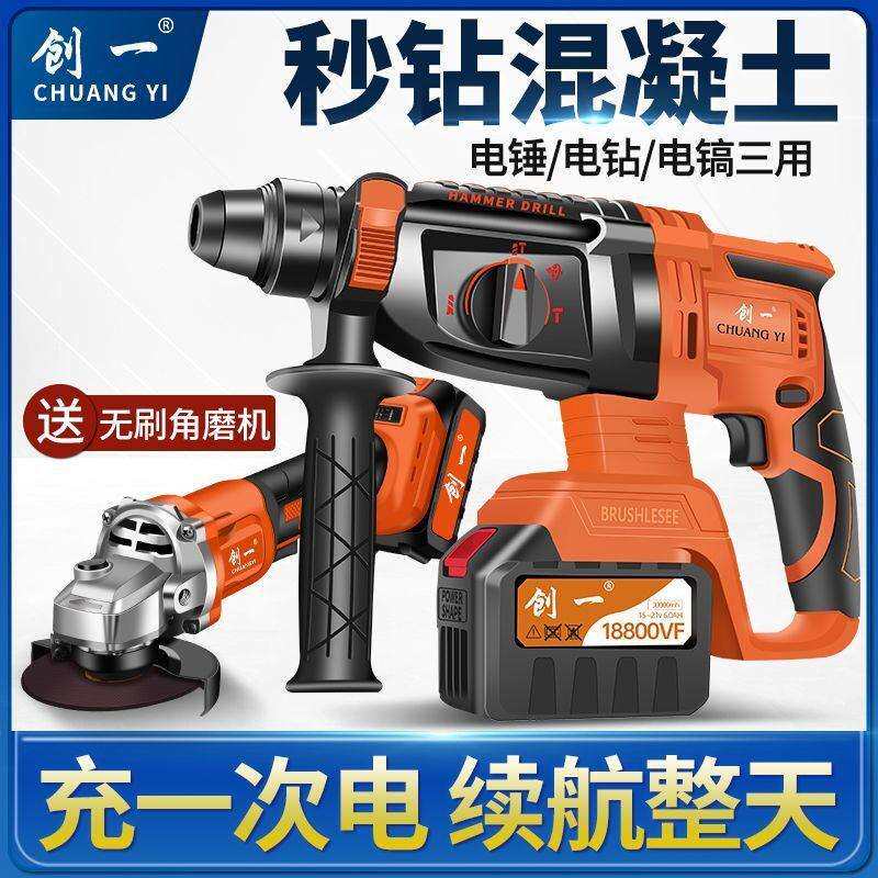 大功率锂电电锤无刷两用电锺冲击钻充电电镐多功能电捶混凝土
