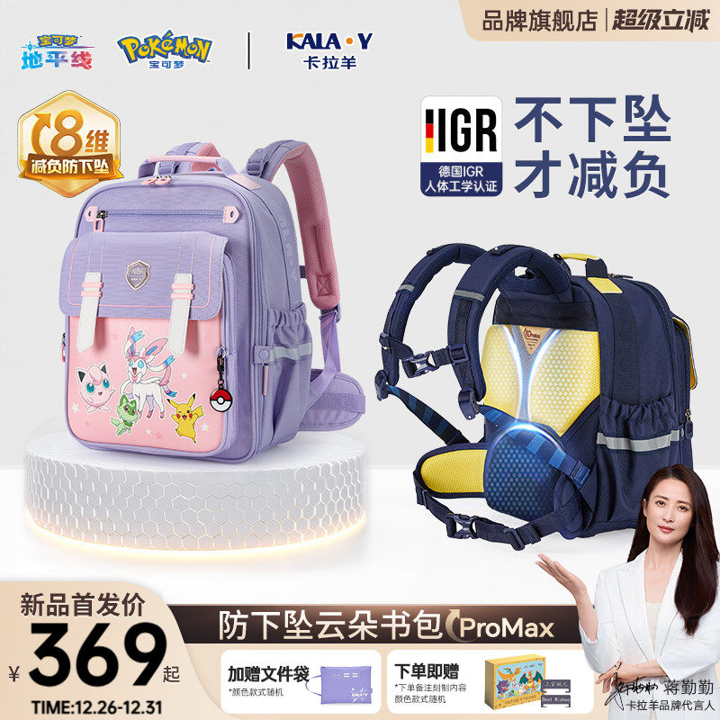 卡拉羊宝可梦联名1-3-6年级新款小学生云朵书包ProMax减负护脊超轻双肩包男孩女生儿童背包