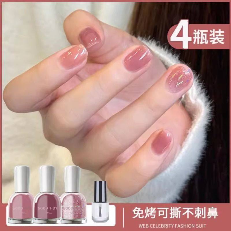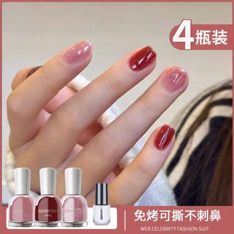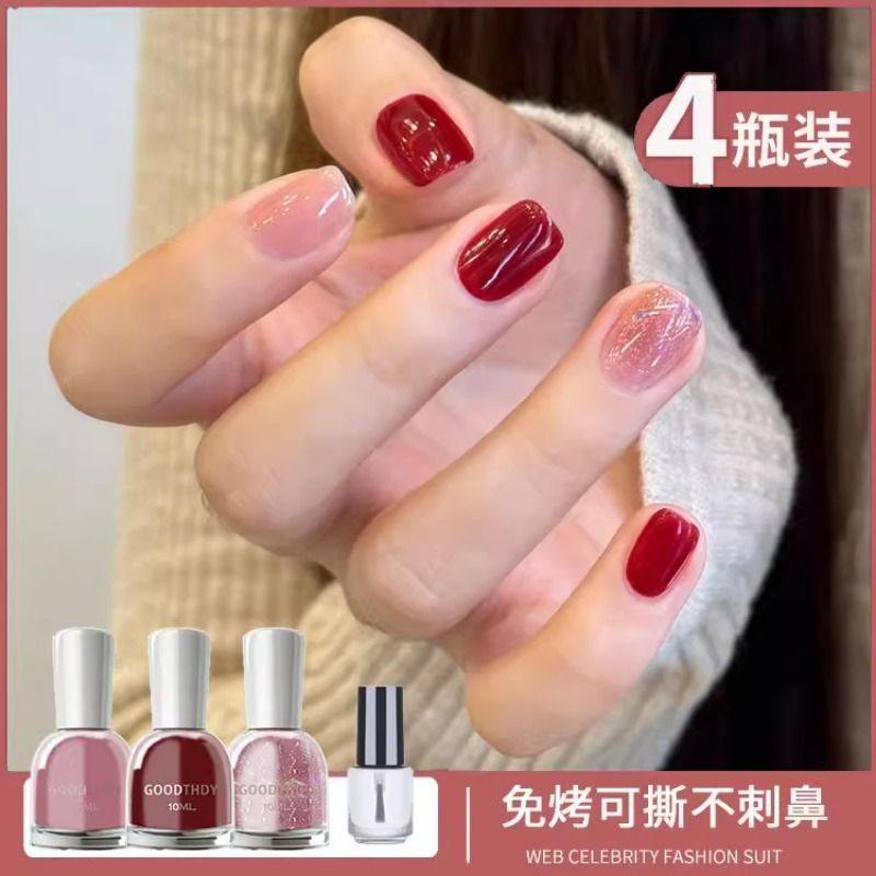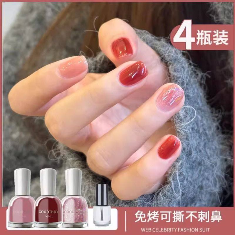 红色系指甲油秋冬安可拉红酒红免烤可撕拉可剥无味2024新款美甲
