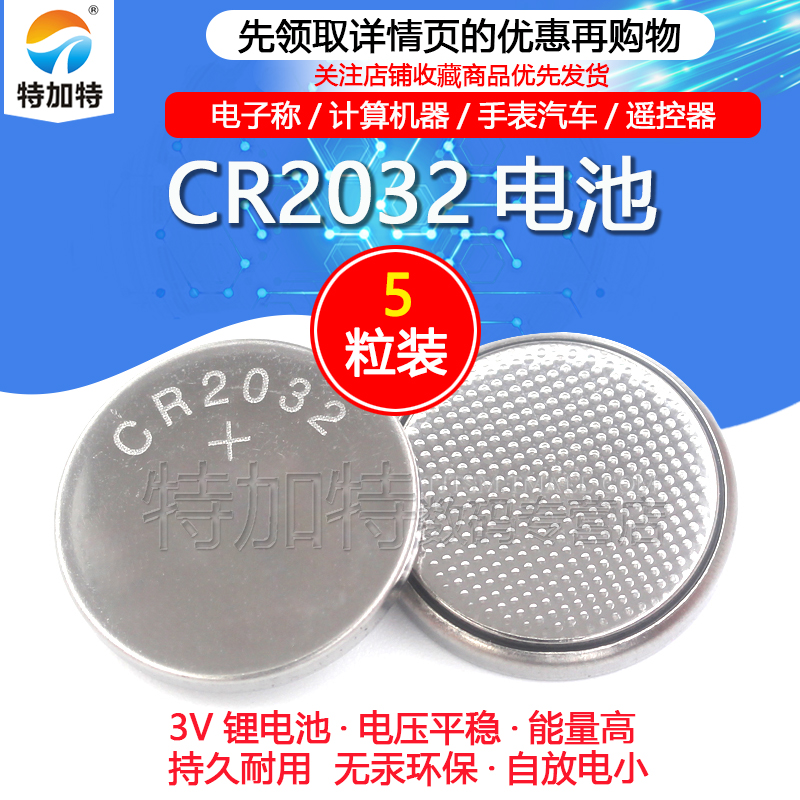 3V纽扣电池CR2032电脑主板主机电子秤计算器人体称体重秤电子配件汽车遥控器钮扣电池通用2032电池(5个)