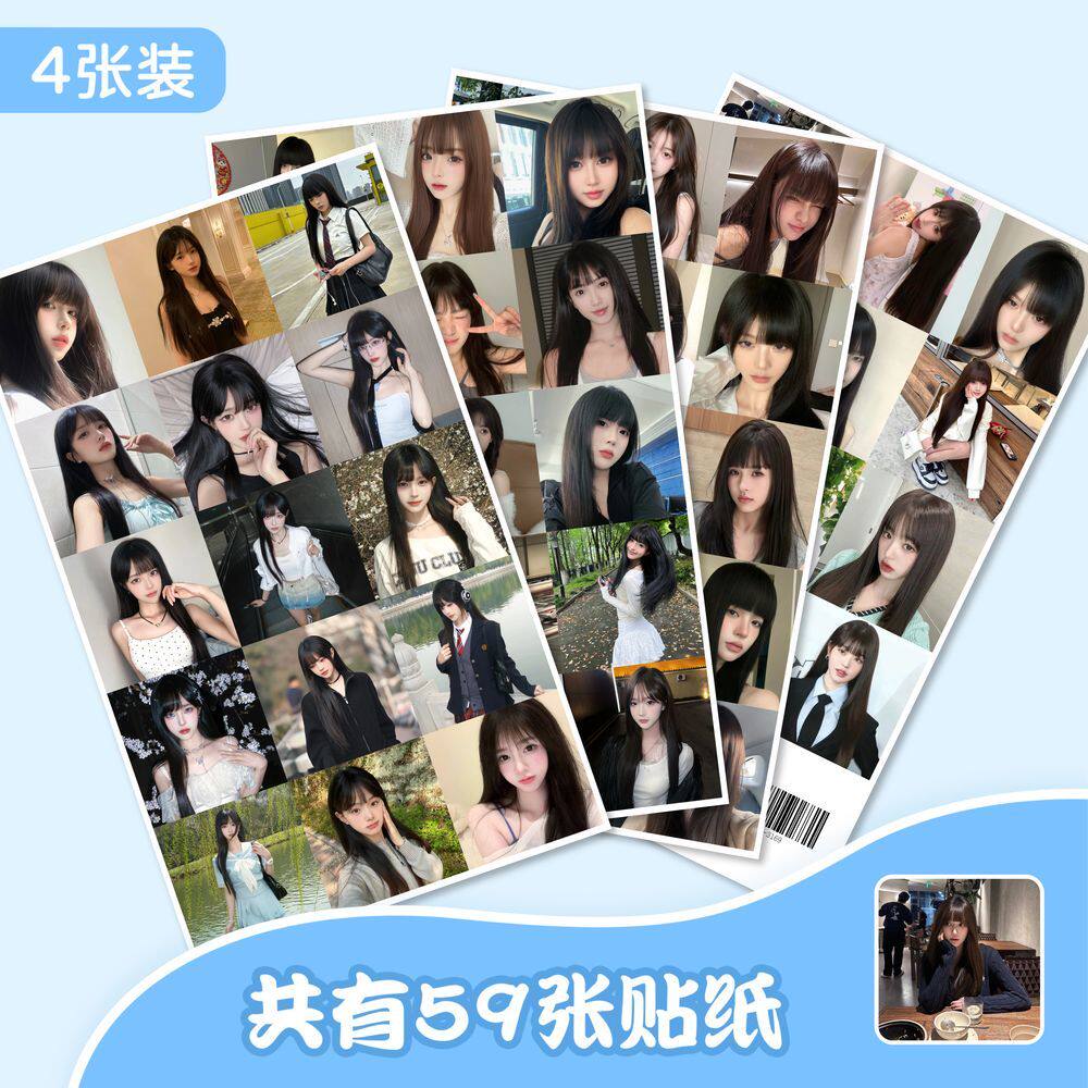 175张齐刘海美女御姐头像贴纸ins氛围感笔记本贴画手机手账贴纸