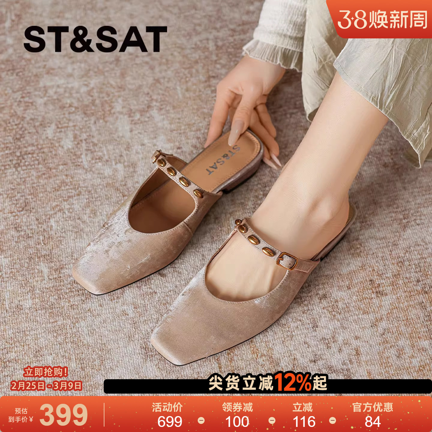 星期六真皮包头凉鞋女2026年夏季新款优雅法式通勤女鞋中后空单鞋