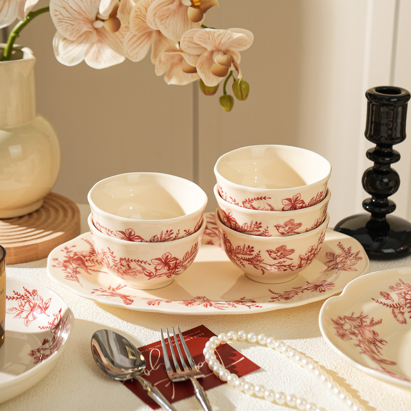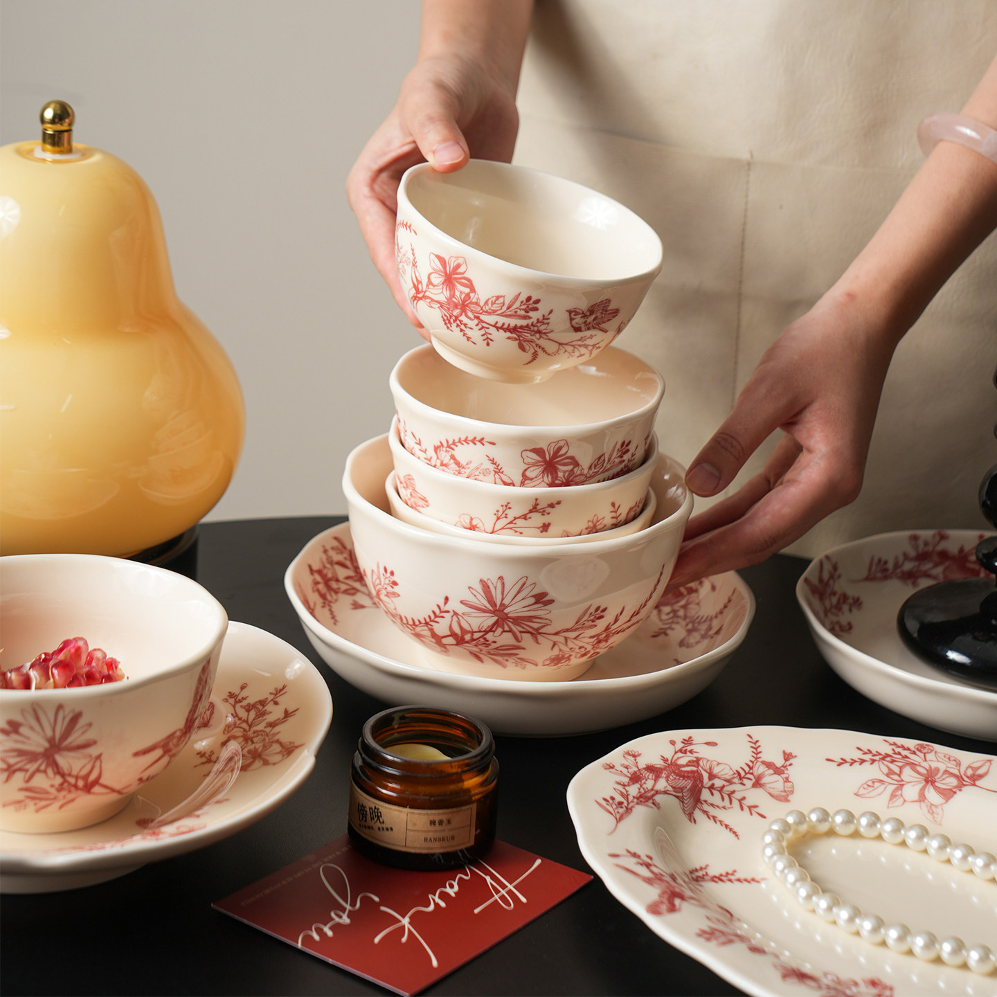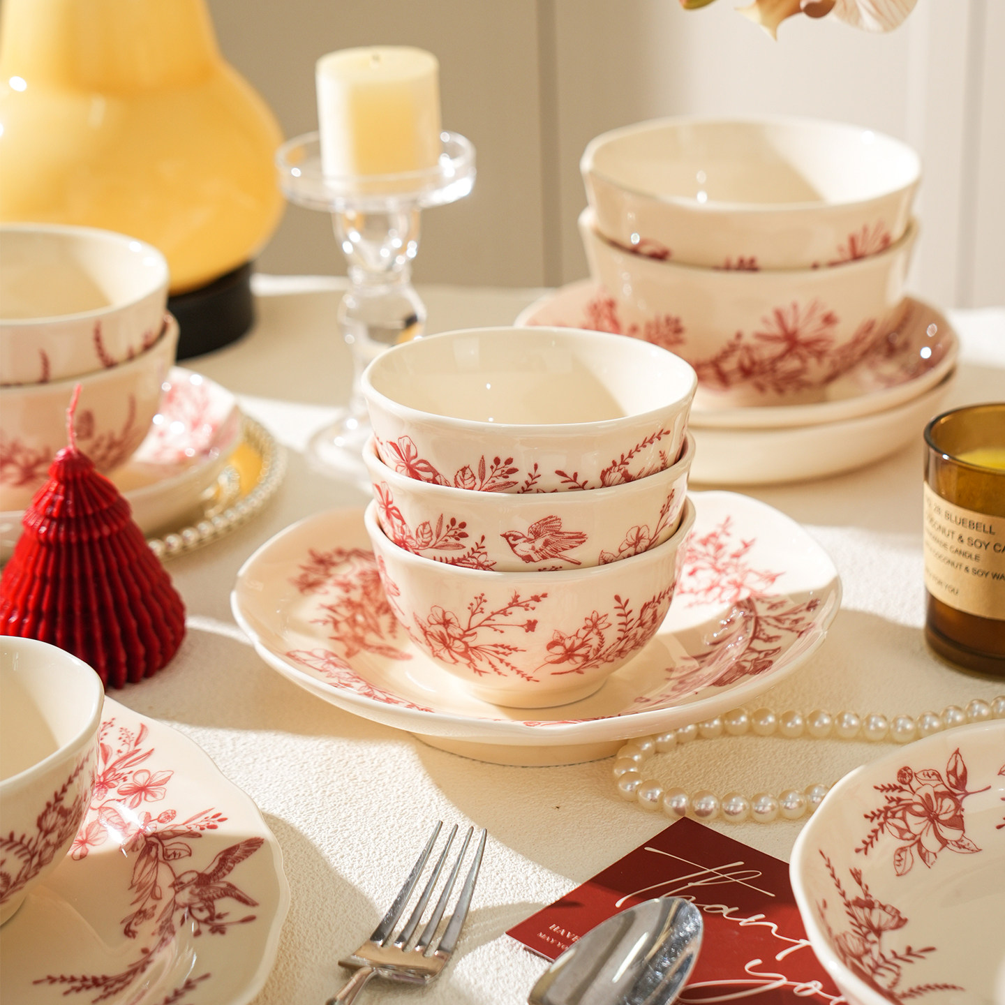 舍里法式复古碗碟套装家用高级感釉下彩碗盘组合米饭碗菜盘鱼盘