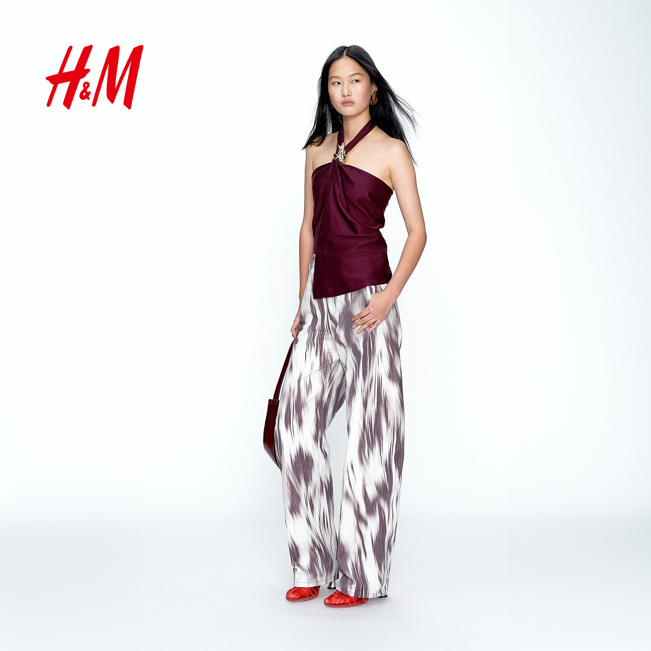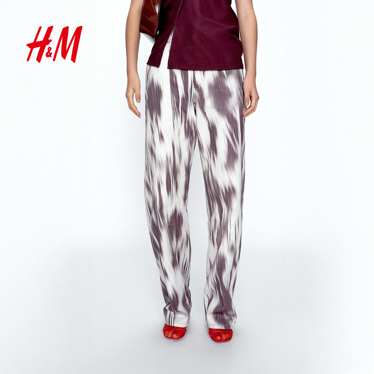JACQUES WEI H&M女装裤子2026春季新款印花棉质舒适长裤1320574
