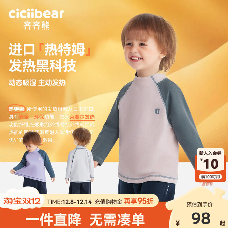[热特姆发热]齐齐熊男童打底衫冬款宝宝t恤长袖儿童上衣2025新款