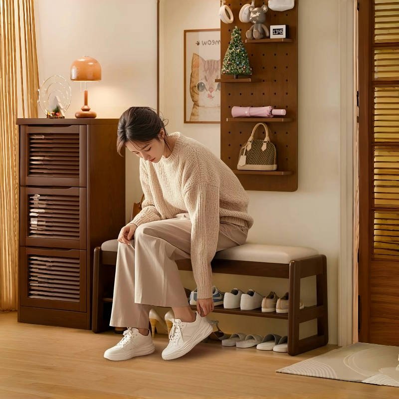 实木换鞋凳家用入户穿鞋凳鞋柜坐凳一体鞋架进门口可收纳坐凳子