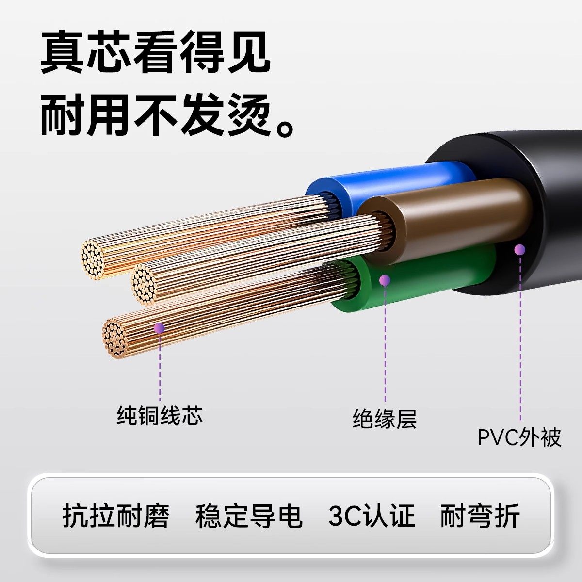 麻将机电源线加长加粗三孔麻将桌插头插电线通用配件神器全铜电源