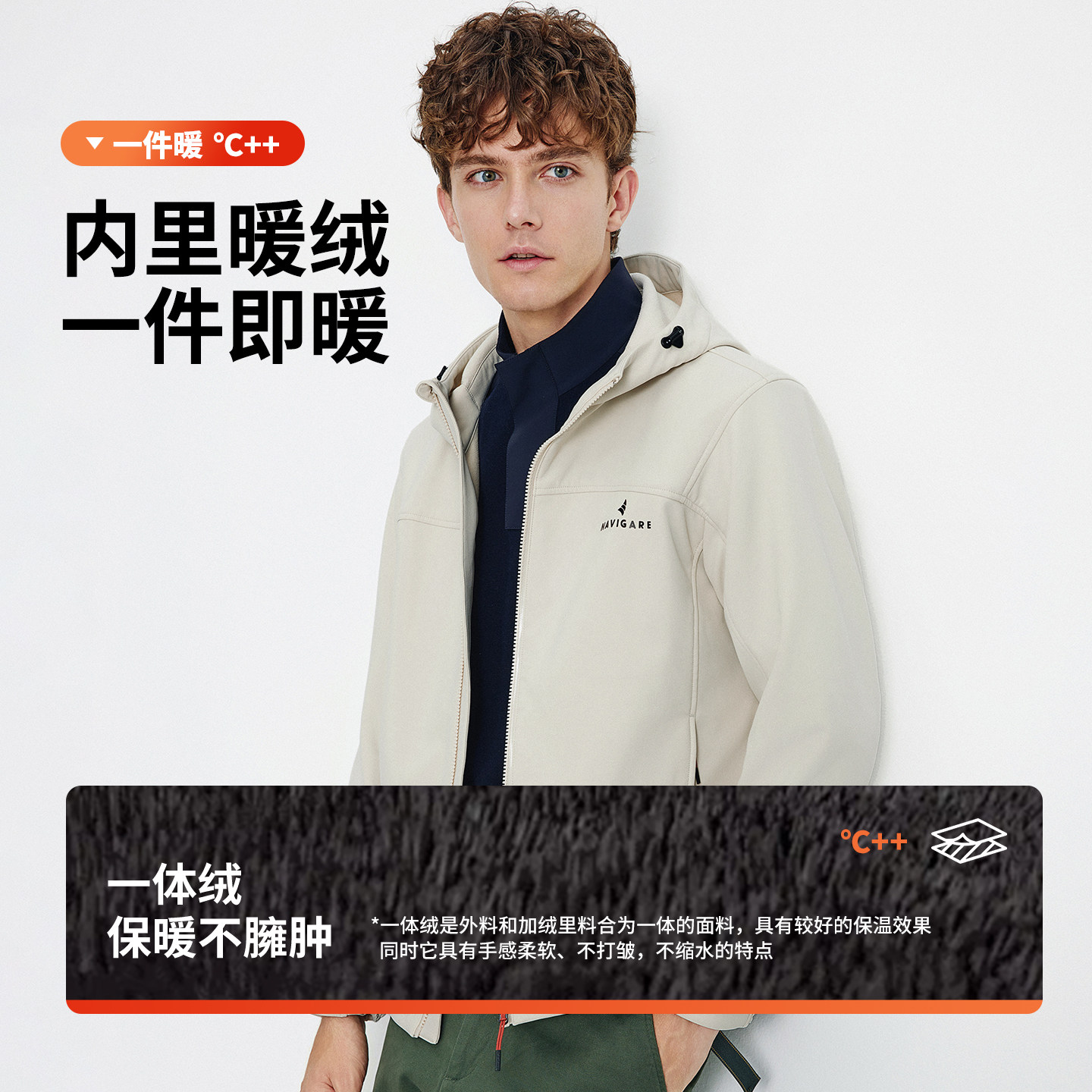 骆驼山海夹克加绒外套男秋冬款工装户外硬壳登山服防泼水旅行服女