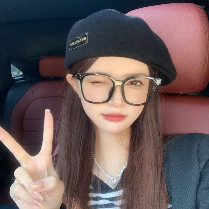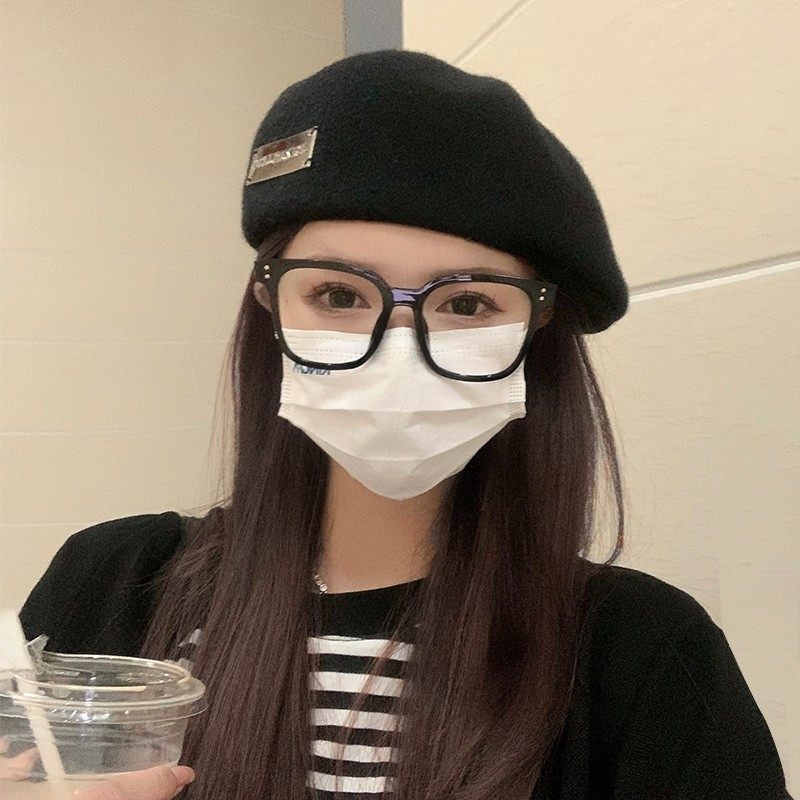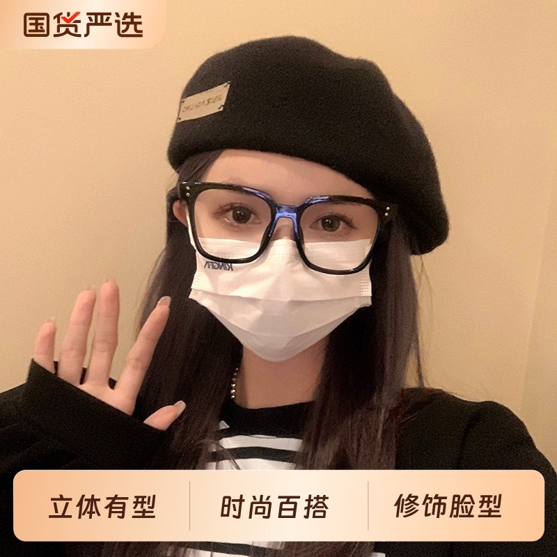 大头围黑色贝雷帽女春秋新款显脸小反戴前进帽秋冬羊毛呢画家帽子
