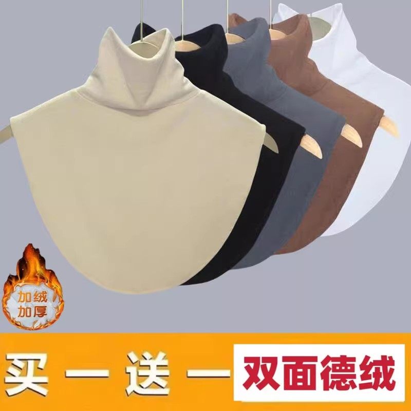 加绒加厚假领子新款高领护颈椎护肩围脖保暖脖套秋冬季德绒黑色