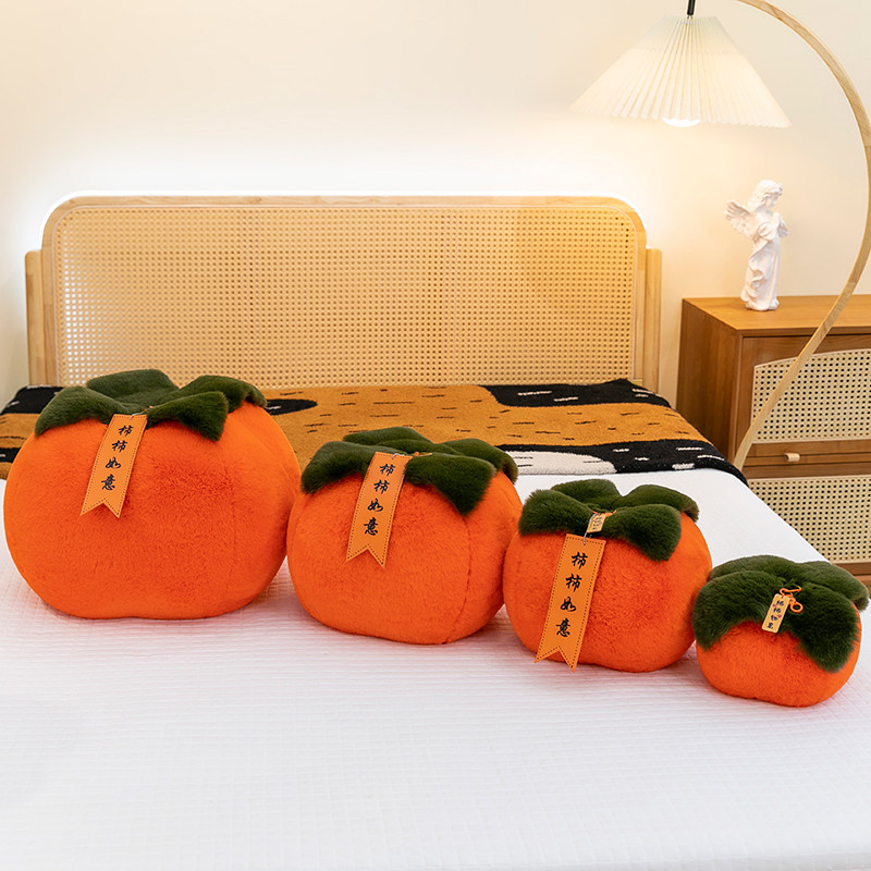 可爱金貂绒仿真柿子抱枕毛绒玩具软靠垫柿柿如意摆件好事新年礼物