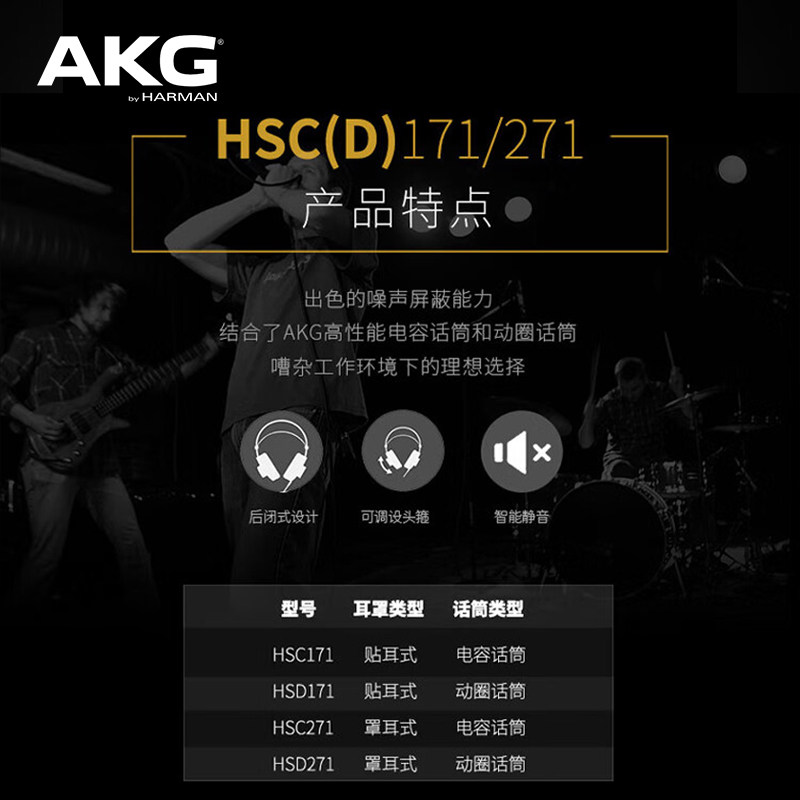 AKG爱科技HSD171 HSC271头戴式专业录音监听耳机网络直播讲课耳麦