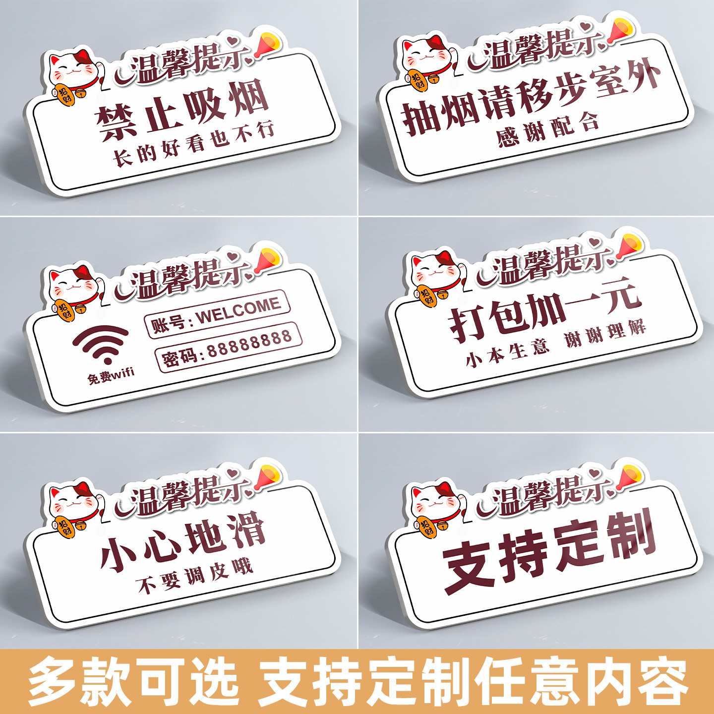 打包加一元提示牌餐具已消毒请放心使用亚克力标识牌子定制餐饮小吃店外卖点餐口收费指示贴免费加饭墙上墙贴