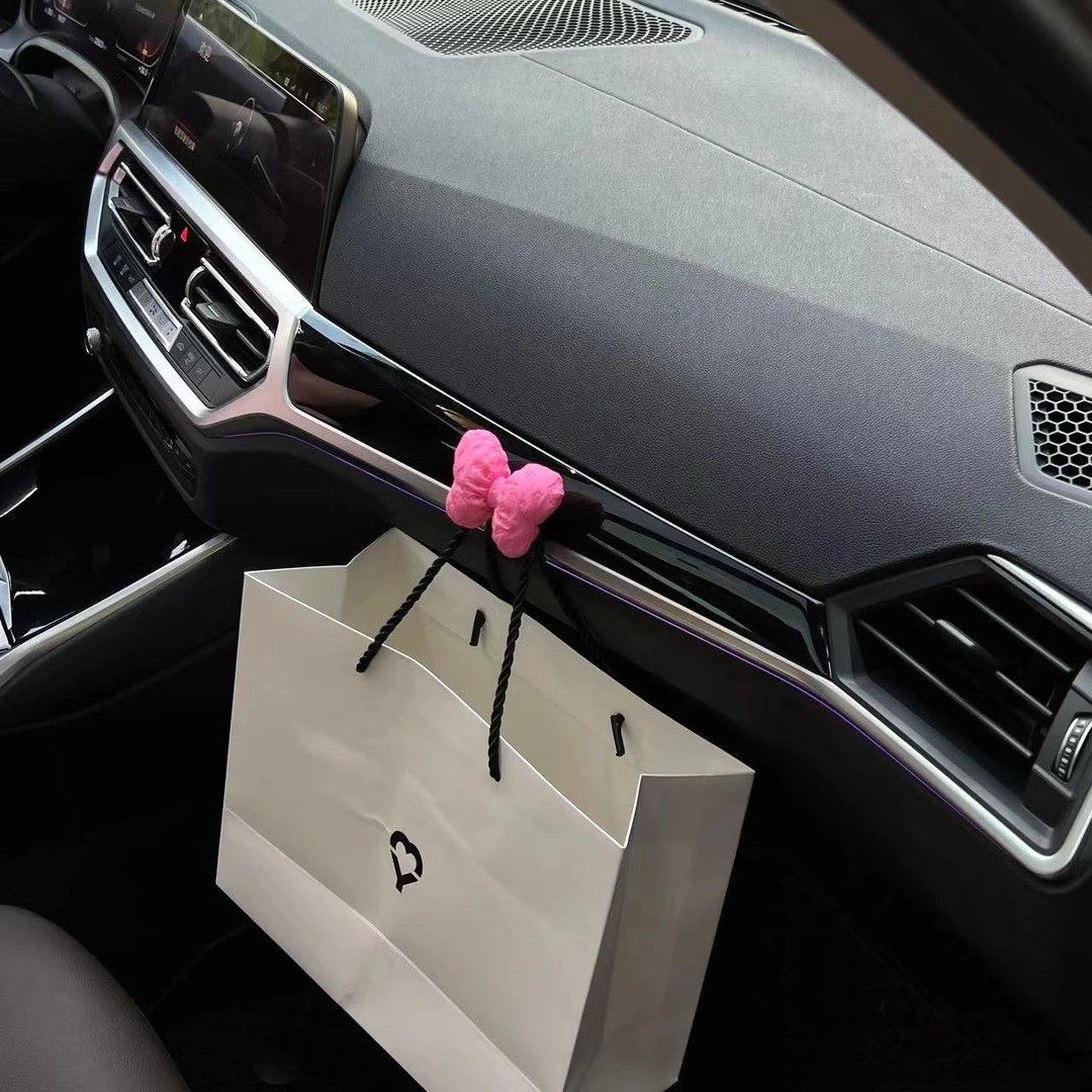 粉色蝴蝶结汽车装饰品摆件可爱车内创意女生创意车载挂钩屏幕装饰