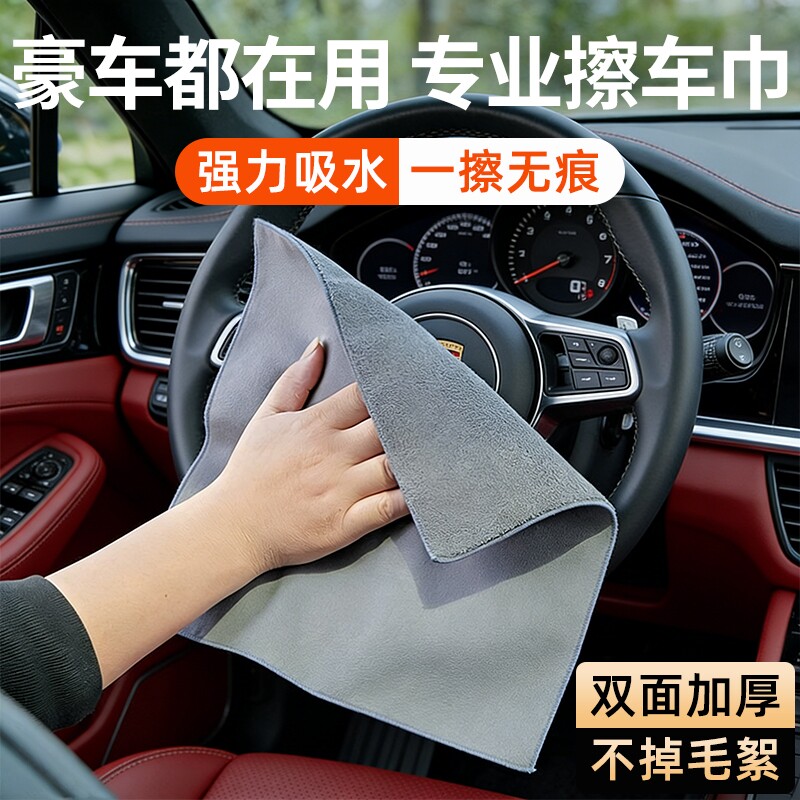 汽车擦车布专用巾麂皮绒鹿皮抹布吸水不掉毛车用内饰洗车毛巾无痕