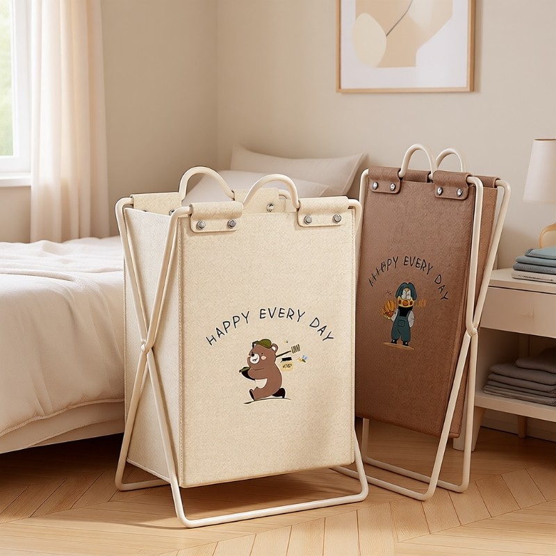 卡通ins简约可爱极简风英文家居脏衣篮收纳桶防水棉麻帆布框学生