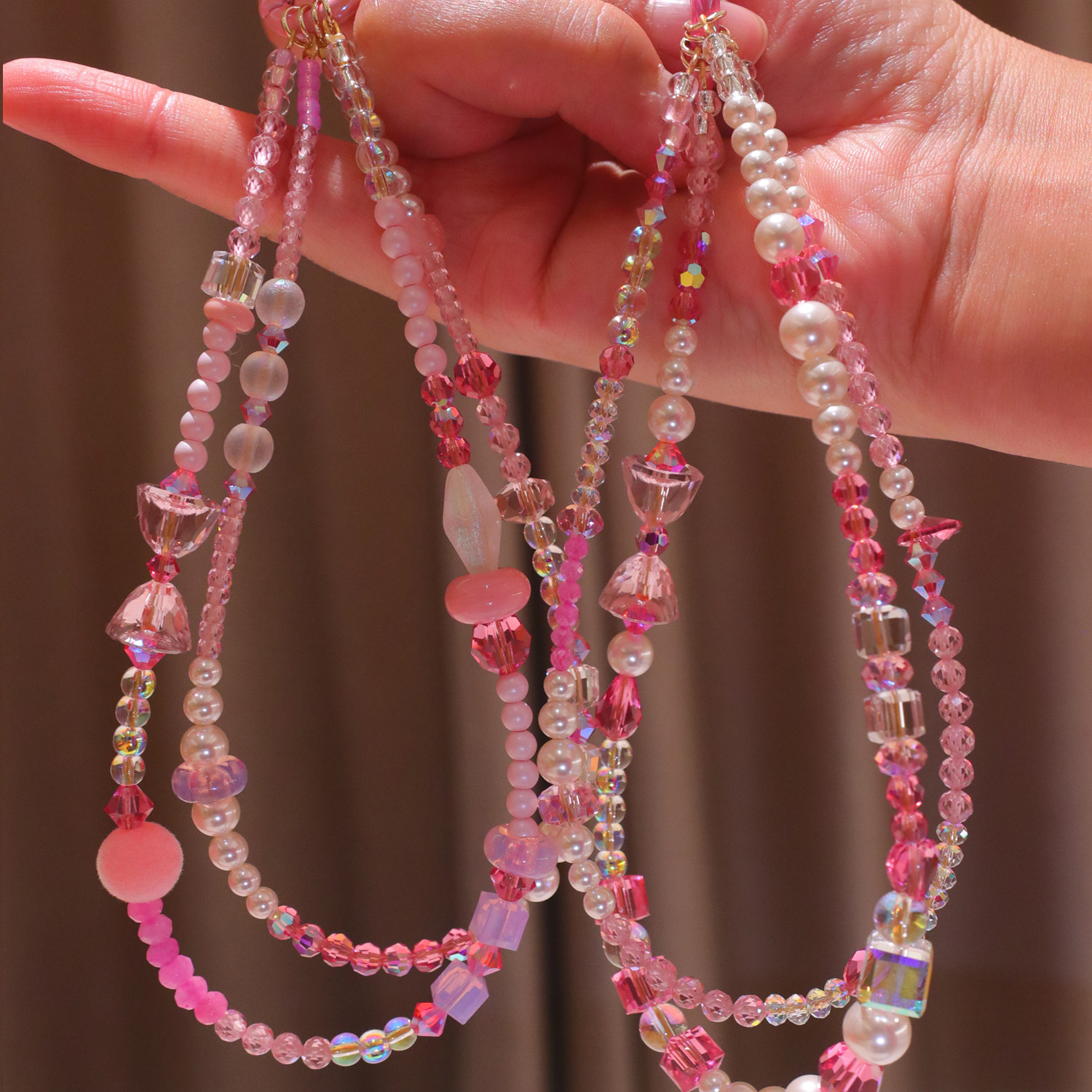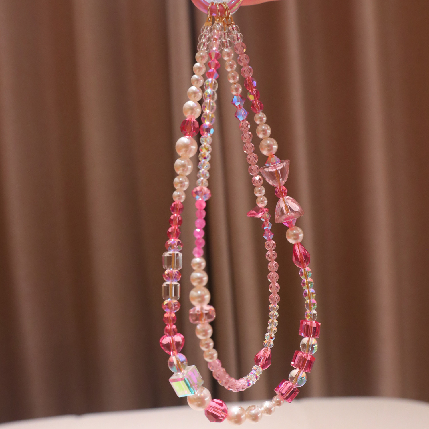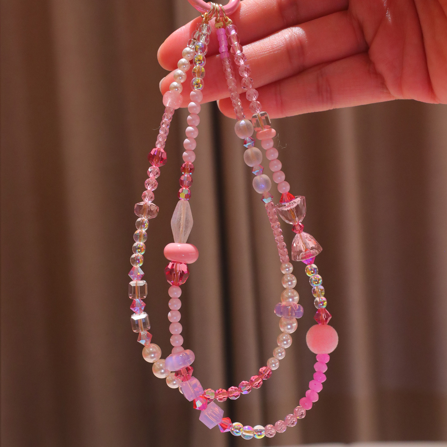 嗲嗲的粉色系施华洛水晶双层手机链精致小公主风挂饰包包挂件礼物