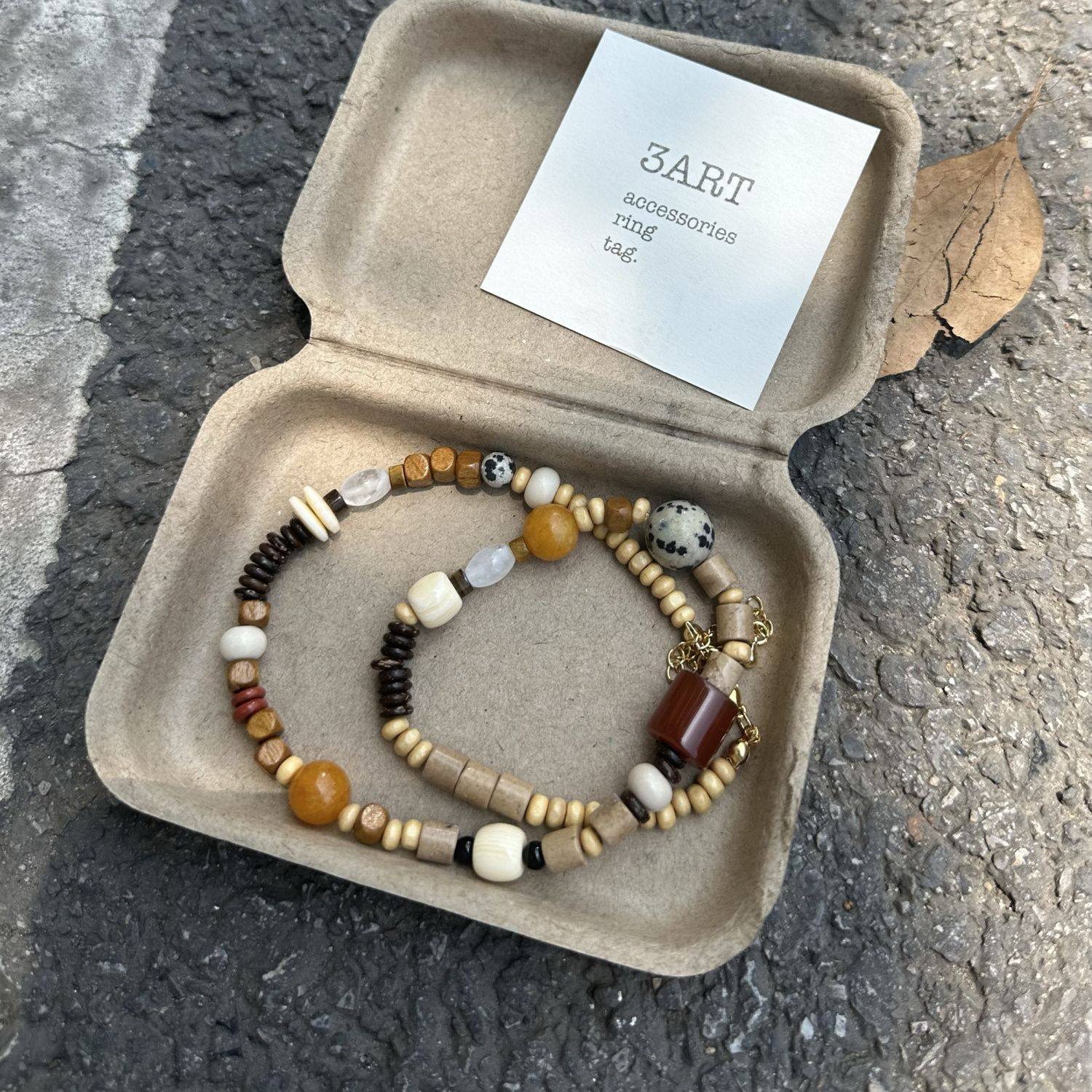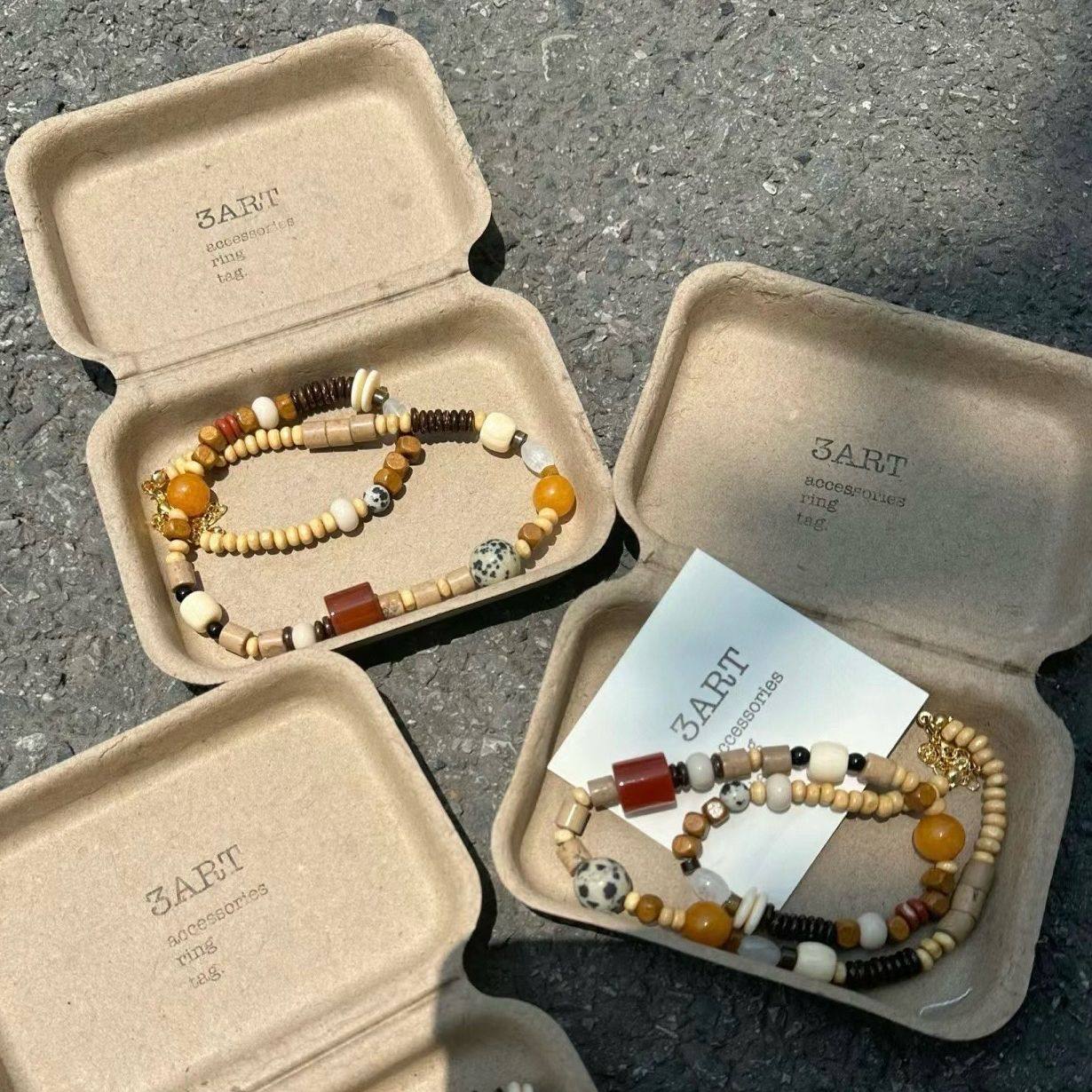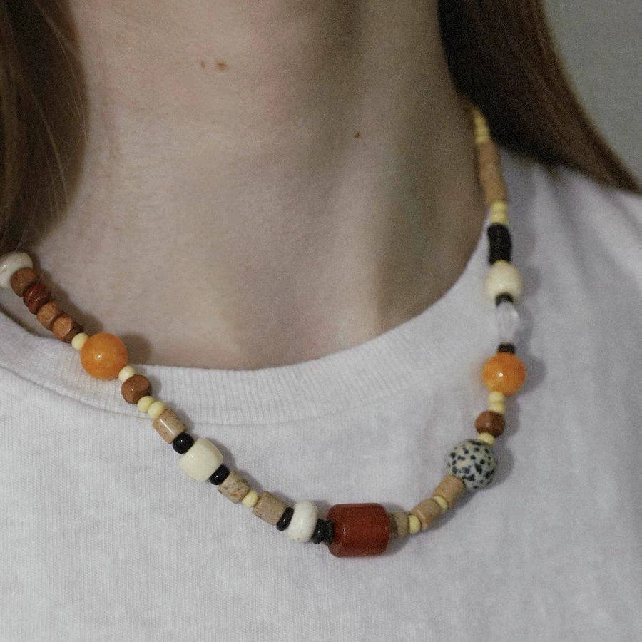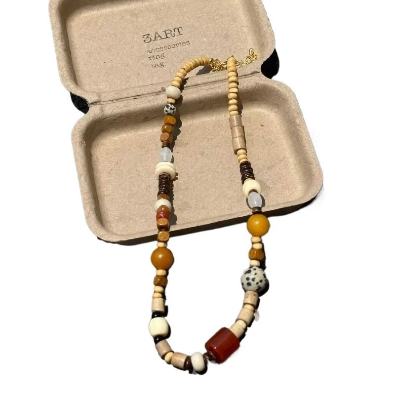 登陆可爱岛屿waki设计师款天然玉石木质珠不对称彩色串珠简约项链