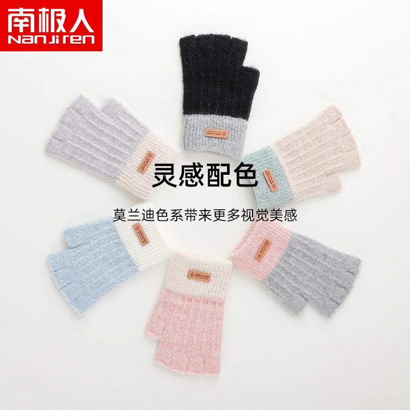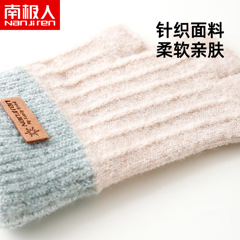 南极人毛线针织手套女秋冬天保暖加绒保暖学生半指写字骑行可爱H
