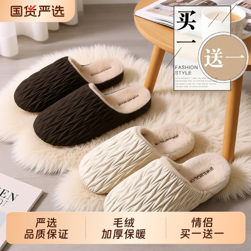 买一送一情侣棉拖鞋女秋冬季室内家居一对居家2025新款毛绒拖鞋男