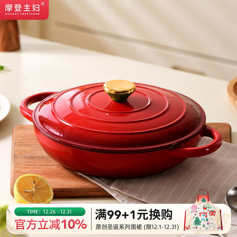 摩登主妇珐琅海鲜锅家用不粘肉蟹煲焖炖锅砂锅燃气专用平底铸铁锅
