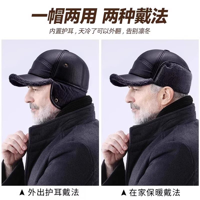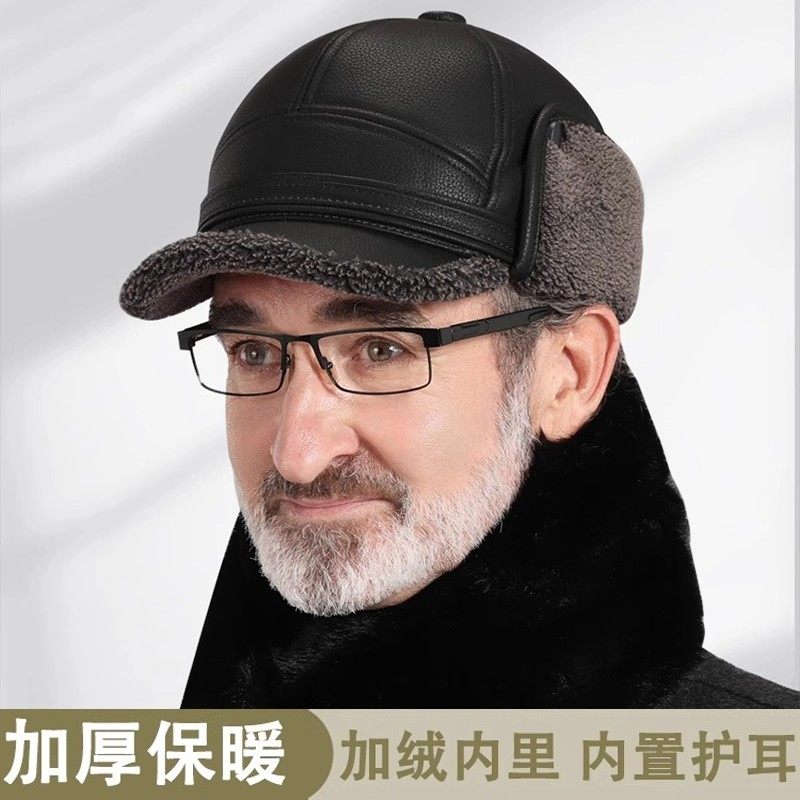 中老年人帽子男冬季保暖加绒加厚爸爸老人皮帽老头护耳鸭舌帽防寒