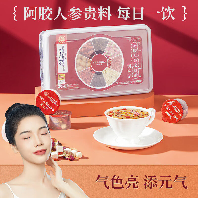 北京同仁堂阿胶补气养血女神茶人参玫瑰调理不足女人养生花茶气血