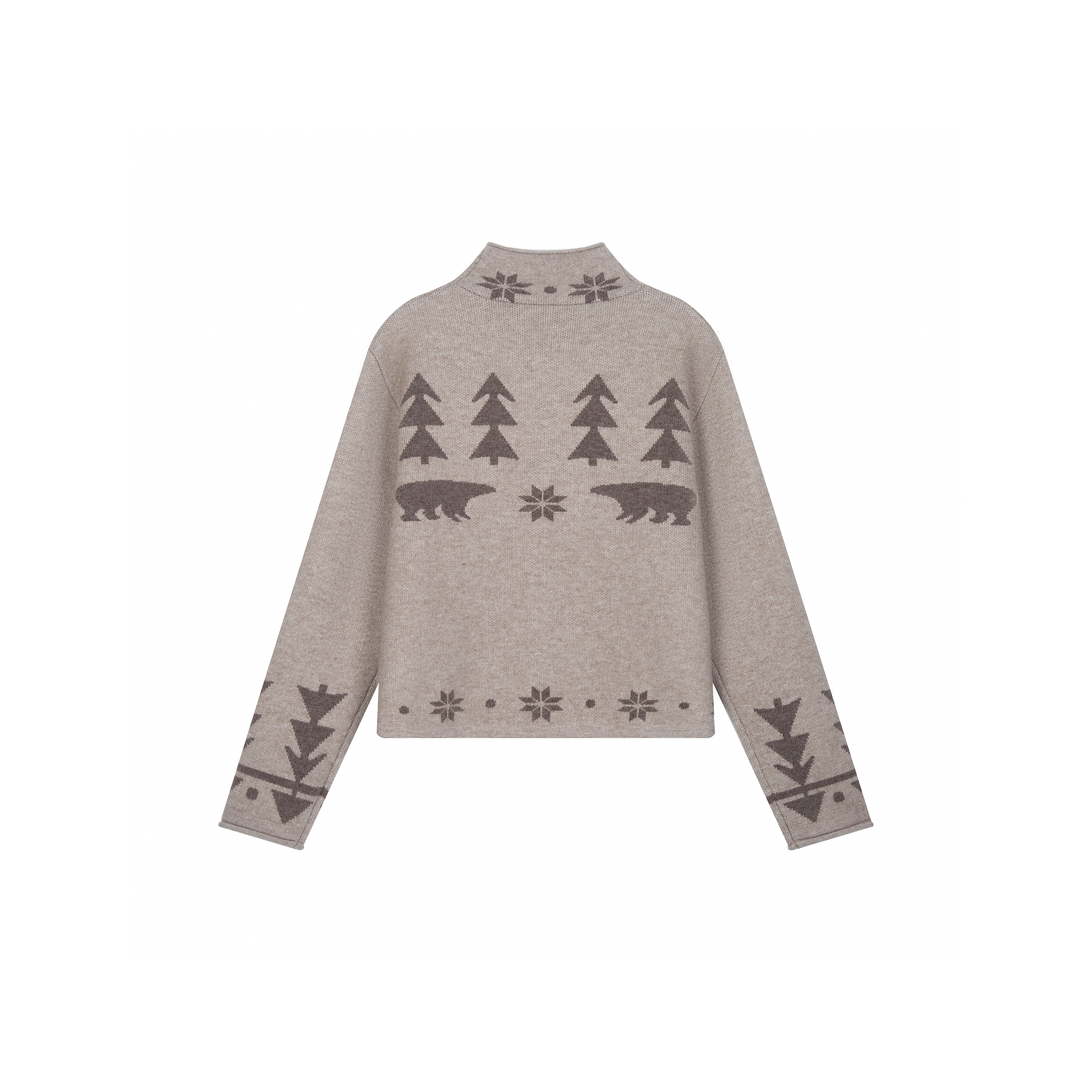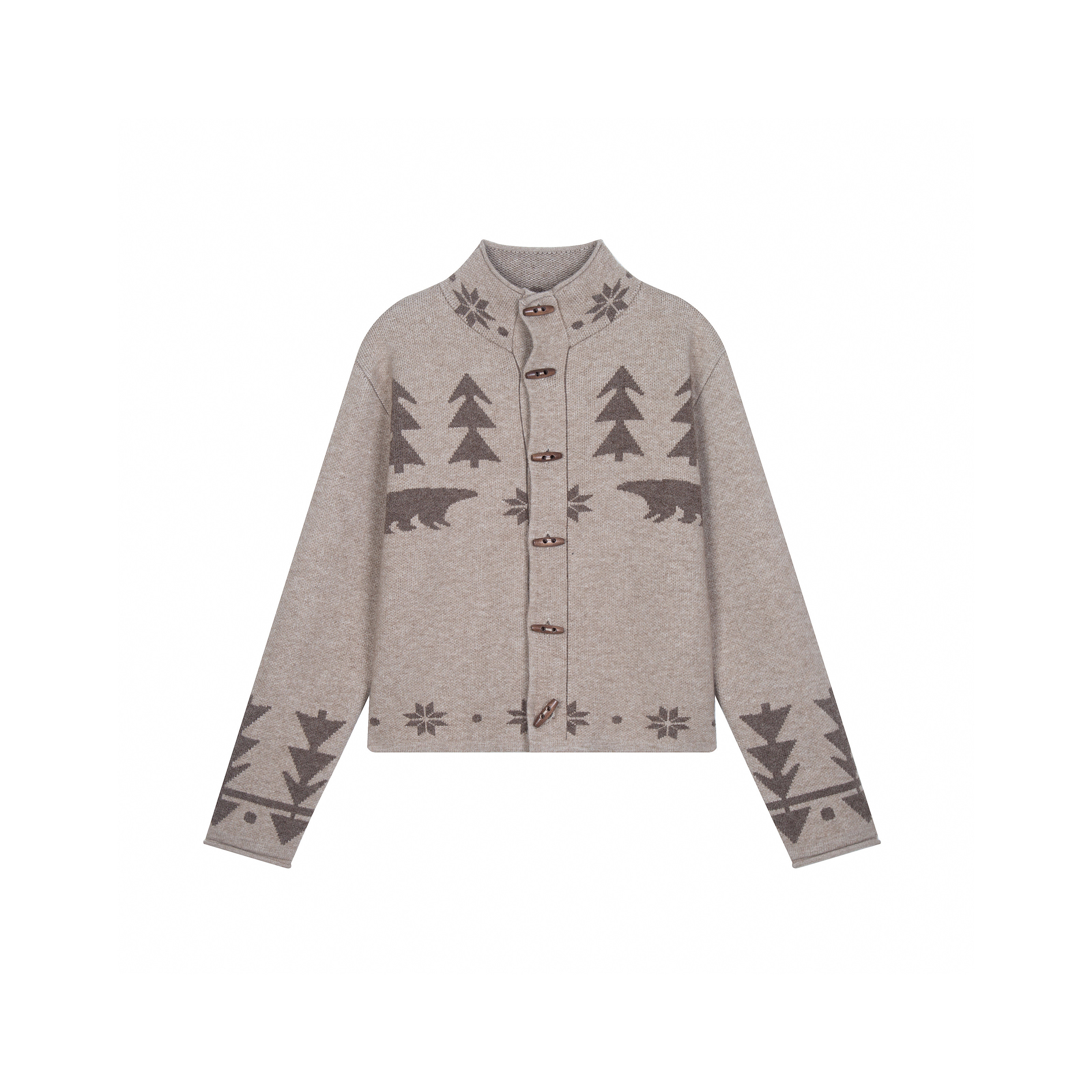 Succinct“诞”暖冬密语羊毛费尔岛小熊提花加厚合身短款开衫毛衣