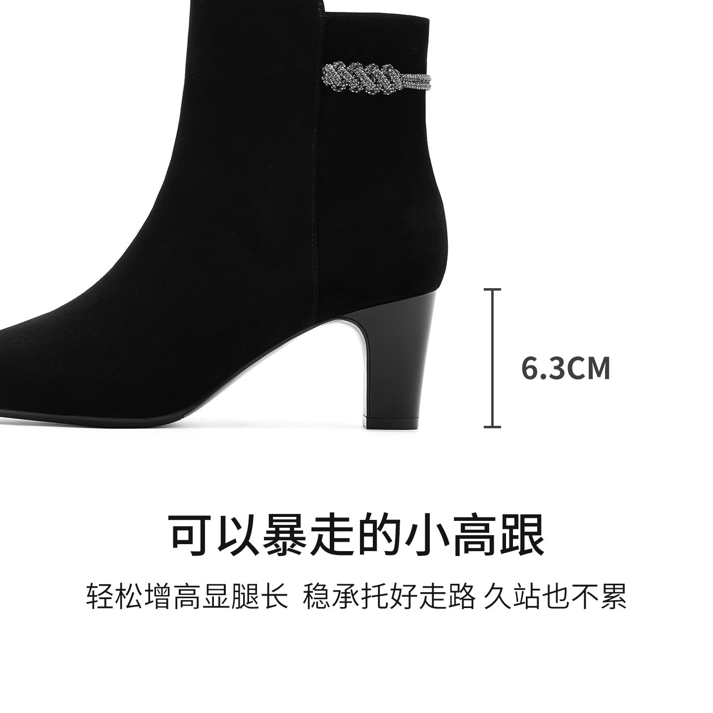 棕色靴子!小个子内增高7CM法式方头靴2025冬新款绒面粗跟短靴女