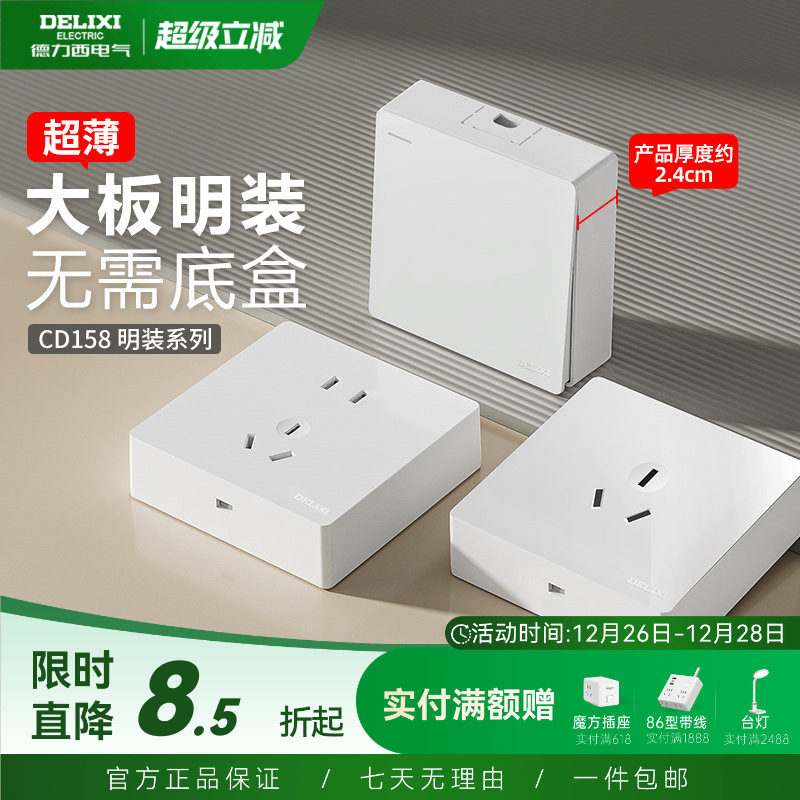 德力西明装插座超薄 一开五孔明线明盒插座空调16a插座面板带开关