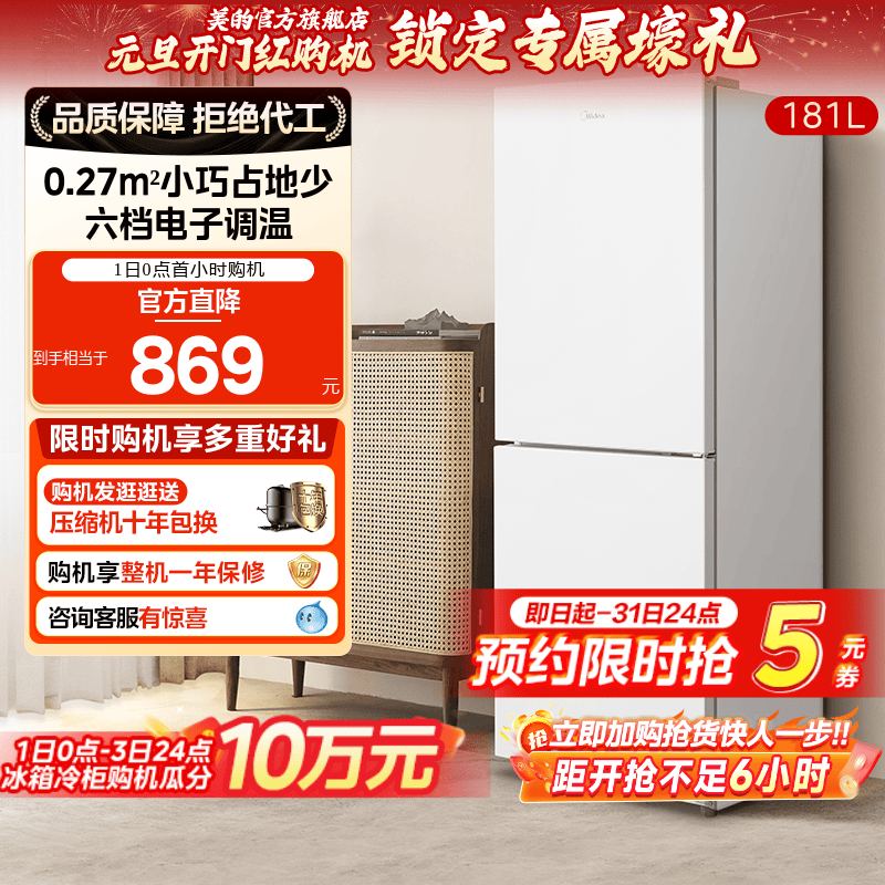 美的190双开门小冰箱家用小型租房宿舍白色两门冷藏冷冻官方节能