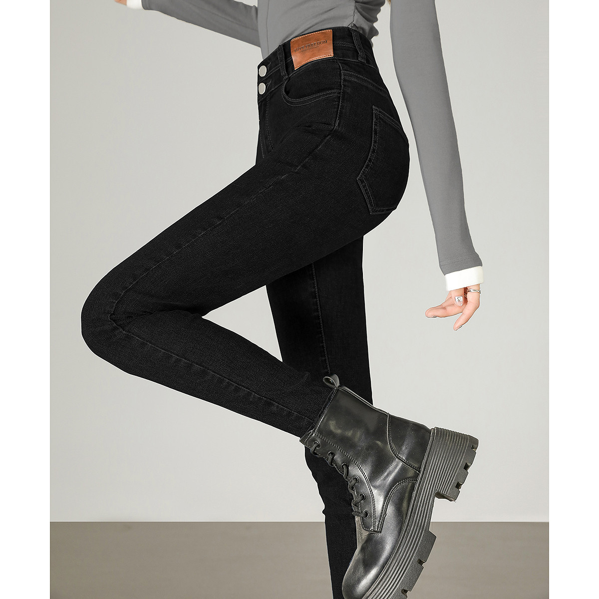 唐狮秋冬新款牛仔裤女高腰两粒扣紧身小脚裤弹力修身显瘦裤子TUTA