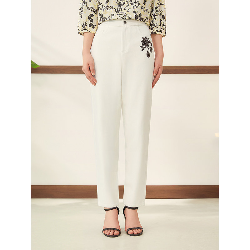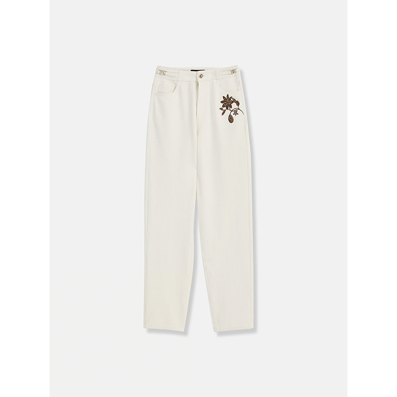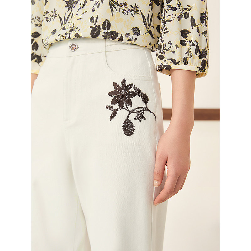 YINER音儿2025秋季新款米韵棉醋弹力竹节刺绣经典小脚垂顺牛仔裤