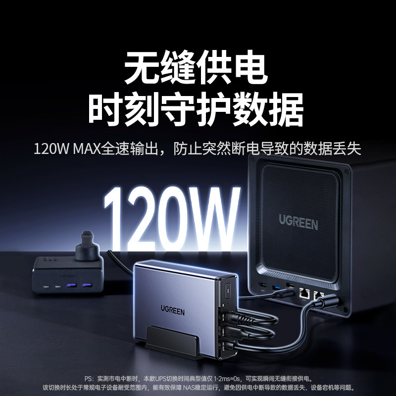 绿联NAS私有云UPS不间断电源 12000毫安120W家庭存储断电保护器 US3000自动识别开关机延长供电硬盘保护电源