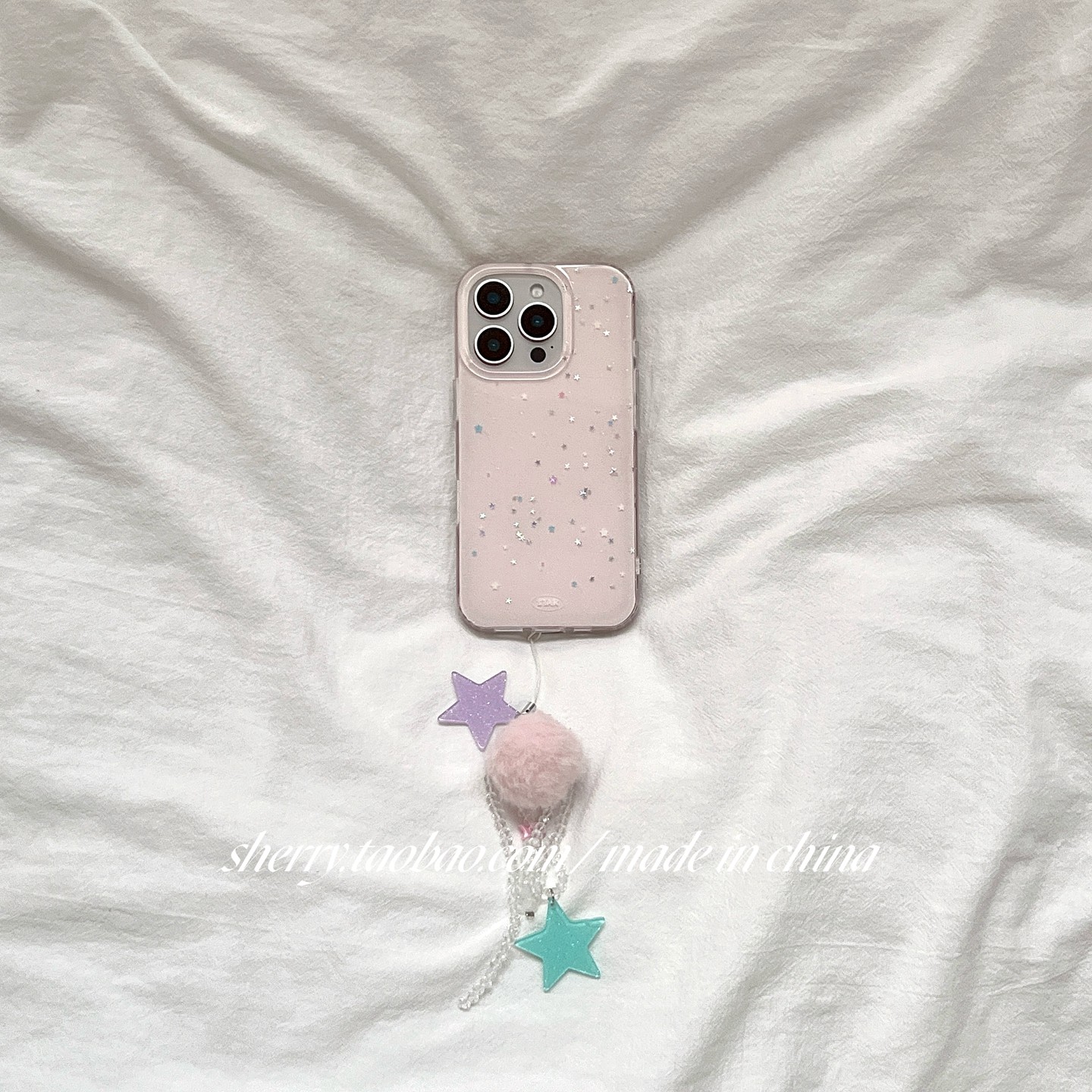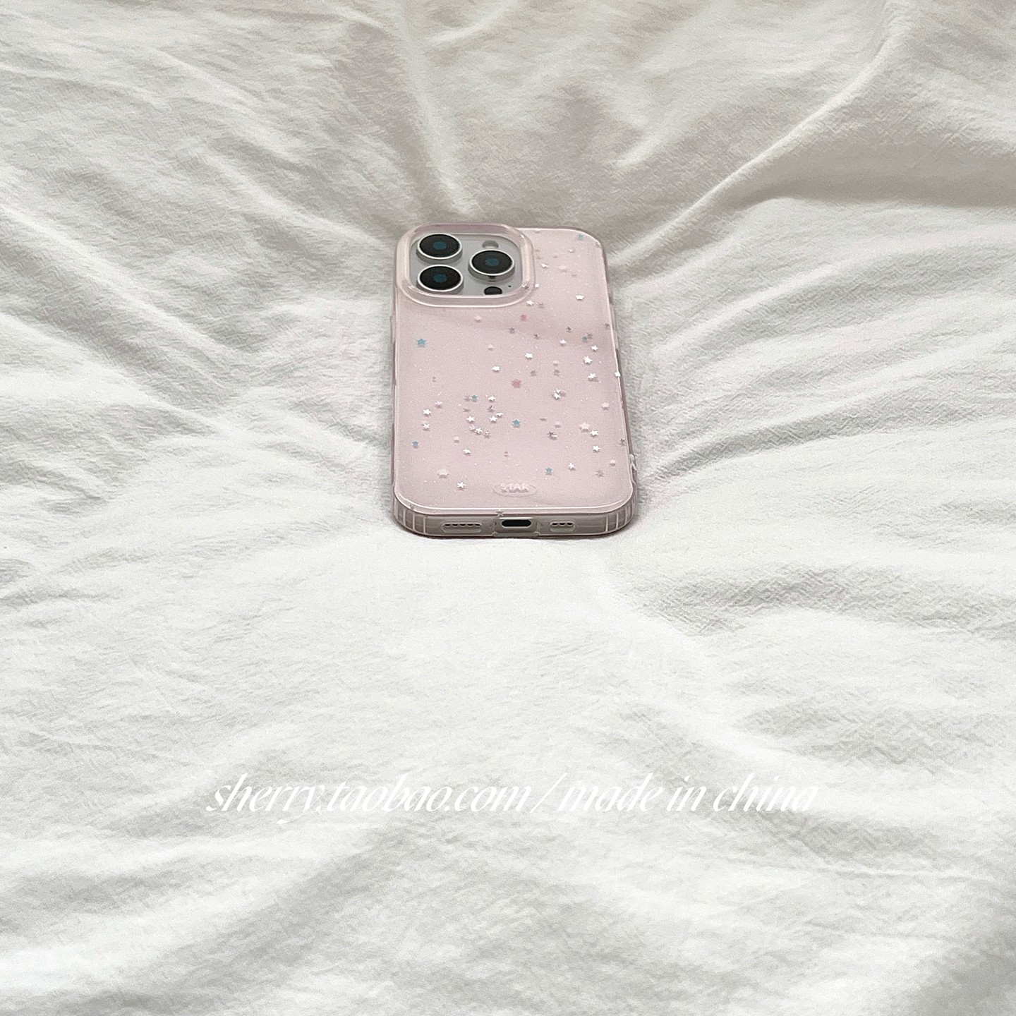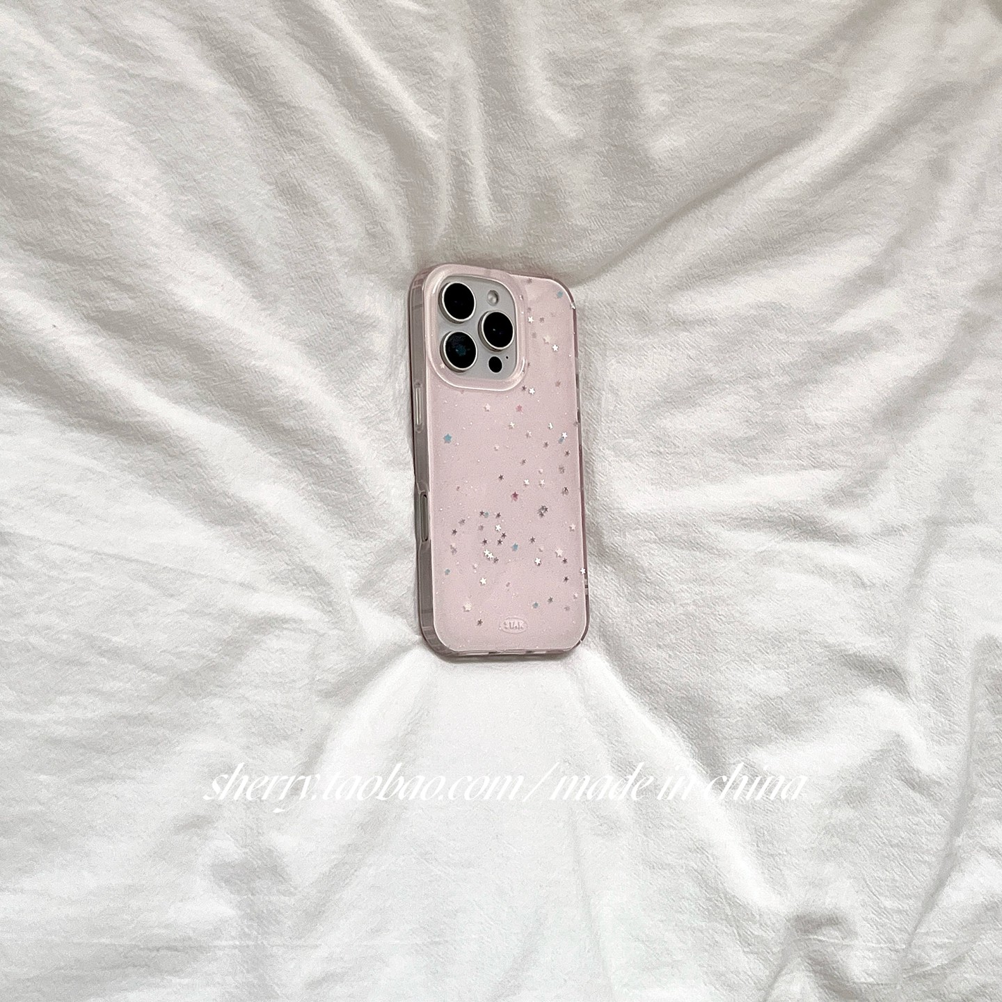SHERRY*ins甜美温柔粉色小星星亮片适用于苹果17ProMax手机壳iPhone16Pro小众少女心15简约14夏日13清新气质