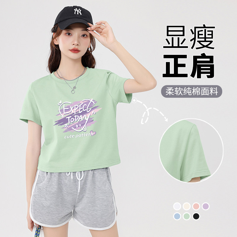 新国货100纯棉t恤女130支双面丝光棉短袖V圆领宽松大码夏季鸡心领