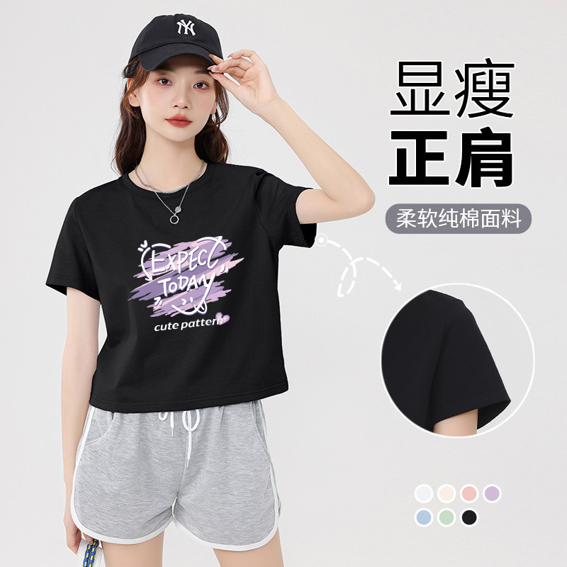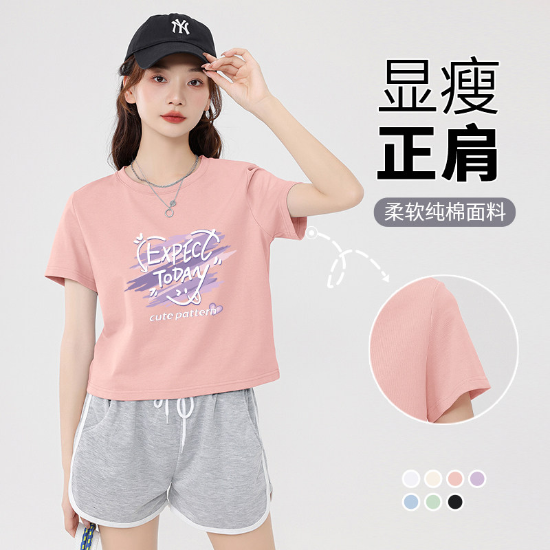 KMV真维斯紫色正肩短袖t恤女2026新款夏天多巴胺穿搭半袖宽松上衣